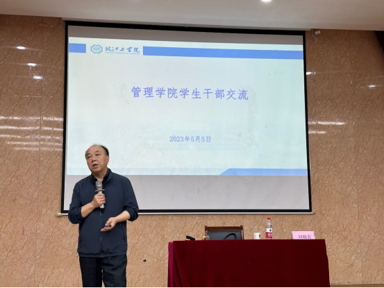 刘院长从管理学院学生干部工作现状出发,对学生干部功能与作用两个方面进行深入剖析,并对学生干部工作提出指导性成长建议。首先,刘院长鞭辟入里地分析了管理学院学生干部工作现状,在给予管理学院学生干部工作高度评价的同时指出学生干部工作中存在的问题;然后结合管理学院实际情况对学生干部的功能与作用做出详细的介绍,为管院学生干部树立了正确的思想认识;最后刘院长对学生干部学风建设工作以及组织文化工作提出建议,并给予管理学院学生干部高度期望,希望管理学院学生干部能够成为“未来的管理者、领导者”。