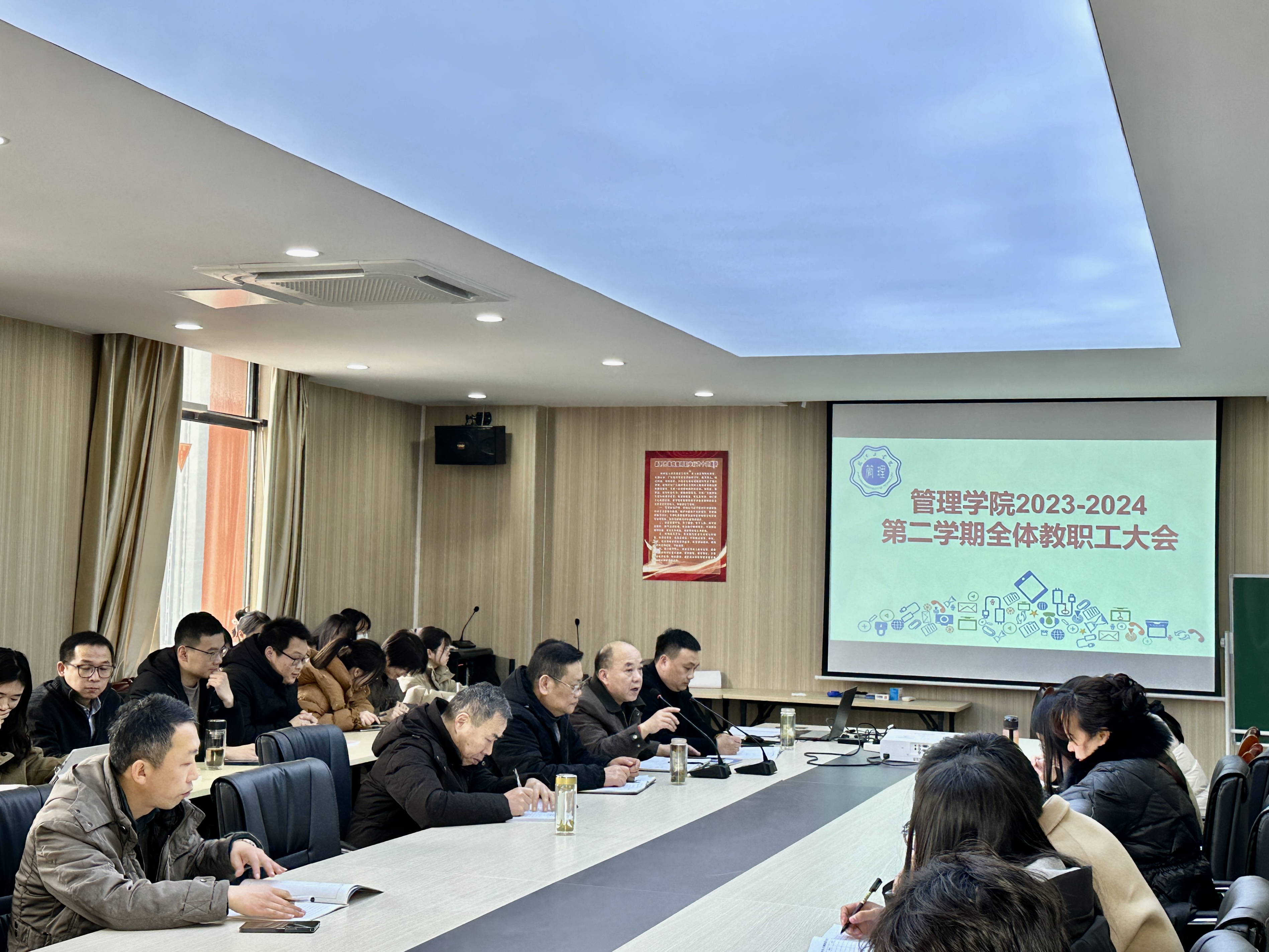 根据18新利怎样2024年工作要点和管理学院2024年重点工作计划,3月6日下午管理学院在617会议室召开了2024年全体教职工大会,在总结上年度工作相关情况的基础上,分析当前挑战与机遇,对新学期的工作进行全面部署,此次会议由院长方承武主持,管理学院全体教职工参加了此次会议。
