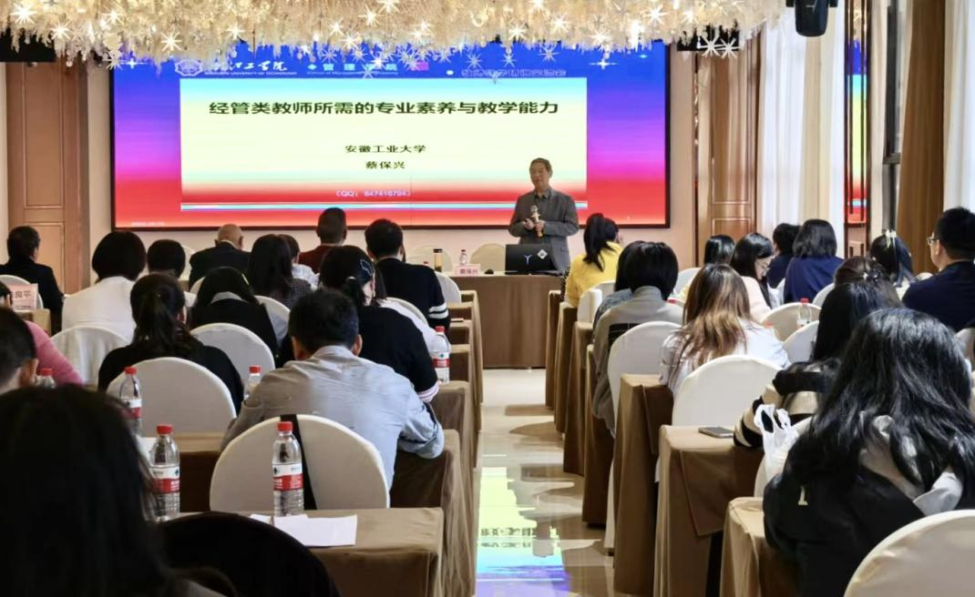 第二场讲座由安徽工业大学蔡保兴教授主讲,他以“经管类教师所需的知识素养和教学能力”为主题,深入剖析了当前经管学科的发展趋势和教学挑战。蔡教授指出,经管类教师不仅要具备扎实的专业知识,还应掌握现代教育技术,善于运用案例教学、讨论式教学等多样化教学方法,激发学生的学习兴趣和创新思维。此外,他还细化了精心备课的五步骤,悉心讲解了每个步骤的特点和应准备的材料,帮助青年教师在实践层面,实现课前教学设计、课堂教学能力提升和课后教学反思流程闭环。