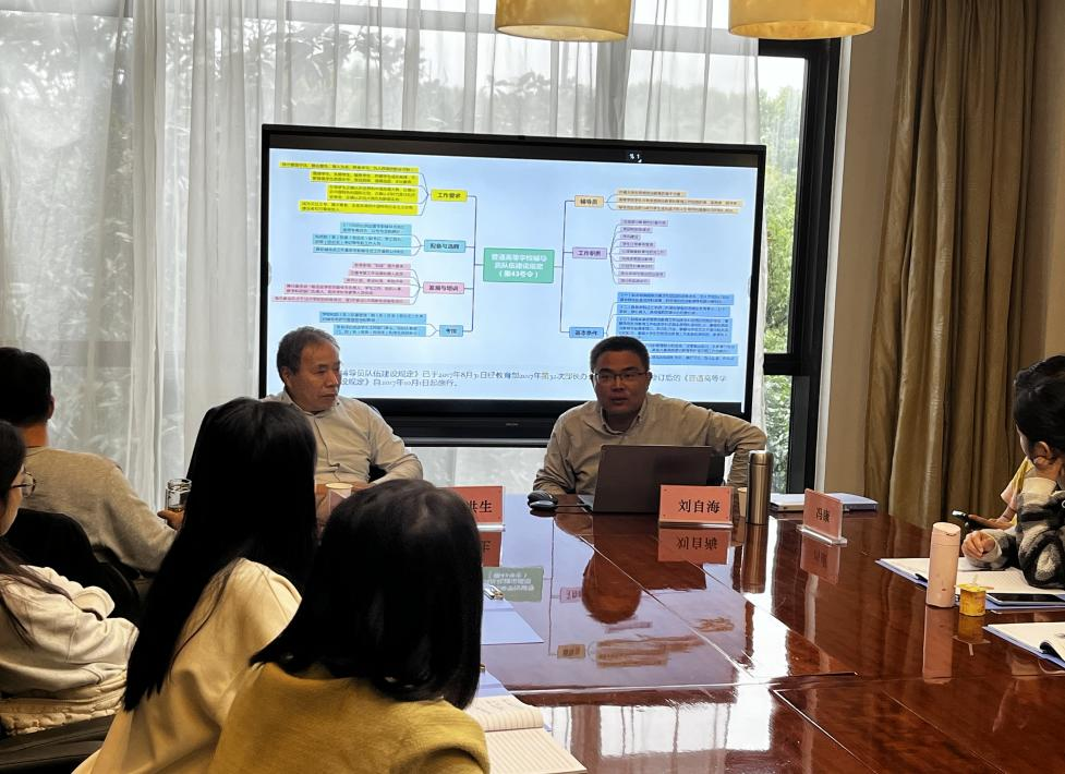 第二场讲座由来自我们同类型学校的马鞍山学院刘自海副院长主讲,主题为“高校辅导员工作的探索与实践”。刘院长围绕辅导员的工作现状、工作职责、工作方法等方面进行了深入探讨。他指出,辅导员不仅是学生思想政治教育的引导者,更是学生学习生活的指导者和心理健康的呵护者。刘院长分享了自己在辅导员工作中的心得体会和成功案例,鼓励辅导员们要勇于探索、敢于实践,不断创新工作方法,提升工作实效。