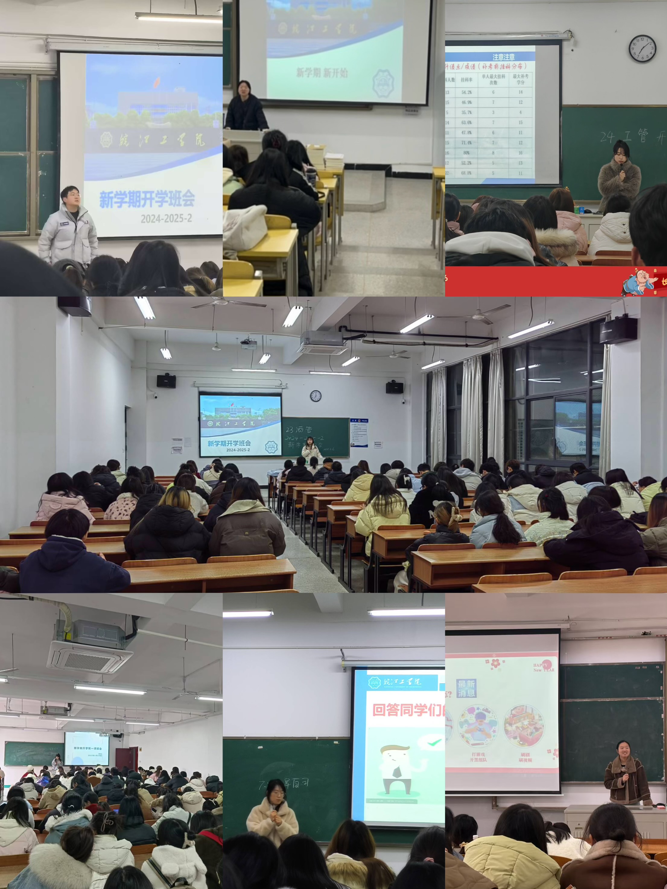 为加强思想教育引导,落实立德树人的根本任务,确保新学期学生工作有序开展,管理学院全体辅导员分别组织学生开展“开学第一课”主题班会。各位辅导员主要围绕合格评估要求、校园安全教育、规章制度、新学期规划、防诈骗等内容展开,引导同学们树牢安全意识,合理制定计划,不断提升自我,以积极的心态迎接新学期。