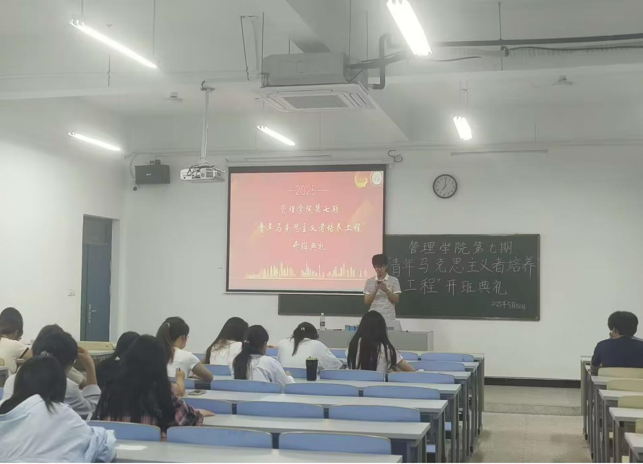 2025年5月18日,18新利怎样管理学院在新利体育在线官网首页登录入口E402教室隆重举行了第七期“青年马克思主义者培养工程”培训班的开班典礼。本次培训班共选拔50名来自不同专业的优秀学生参与,他们在这里开启了一段深入学习马克思主义理论及其中国化最新成果的旅程。