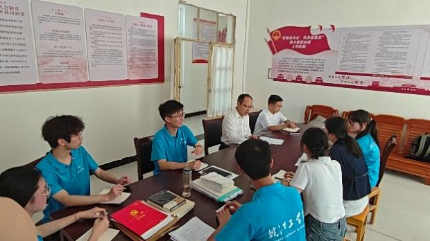 挂牌仪式结束后,姚书记与团队师生进行了深入座谈。姚书记从经济、文化、人口三个维度全面介绍了老集镇的发展现状。老集镇位于临泉县东南部,是连接豫皖两省的重要门户。座谈会上特别提到,老集镇文化底蕴深厚,曾是皖北第一古寨,至今保留着丰富的历史文化遗产。镇内的魏野畴烈士纪念馆是当地重要的红色教育基地,记录着革命先烈的英勇事迹。此外,当地还流传着“半截楼”、“一口桥”等脍炙人口的民间传说,展现了独特的地方文化魅力。
