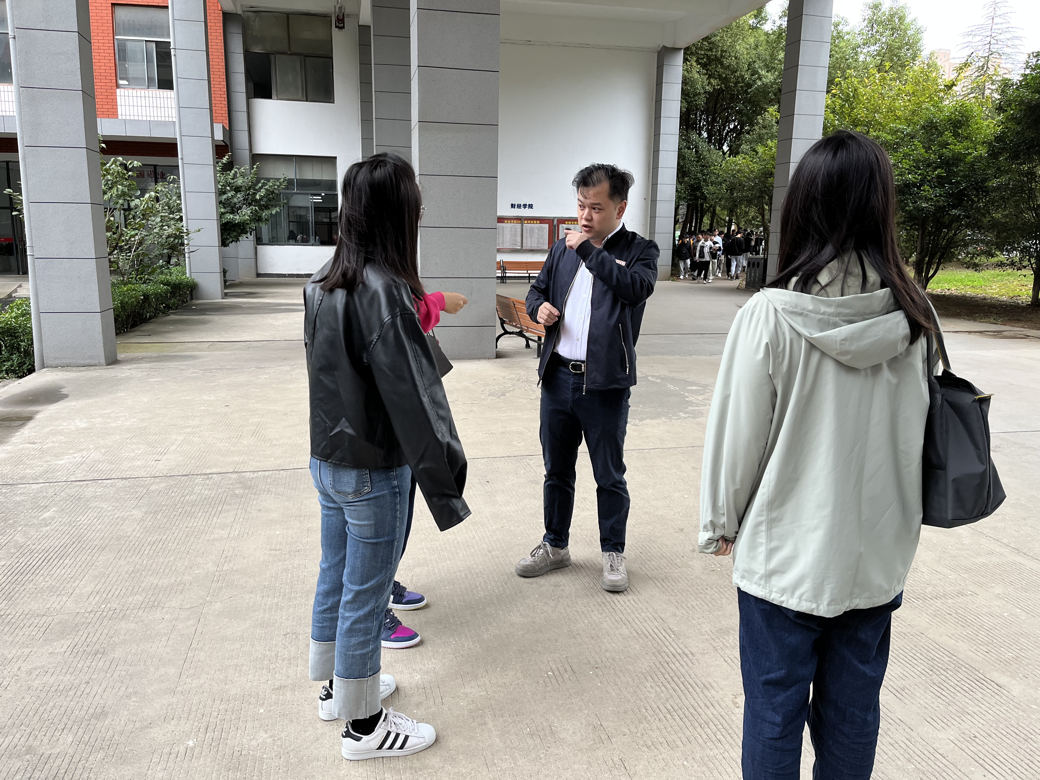 在国庆假期结束,同学们返校上课的第一天,管理学院开展了校园文明督导活动,管理学院党总支副书记冯康、学工办主任韦晨珺娃和全体辅导员老师上午七点四十分在A、B教学楼共同参加此次活动。