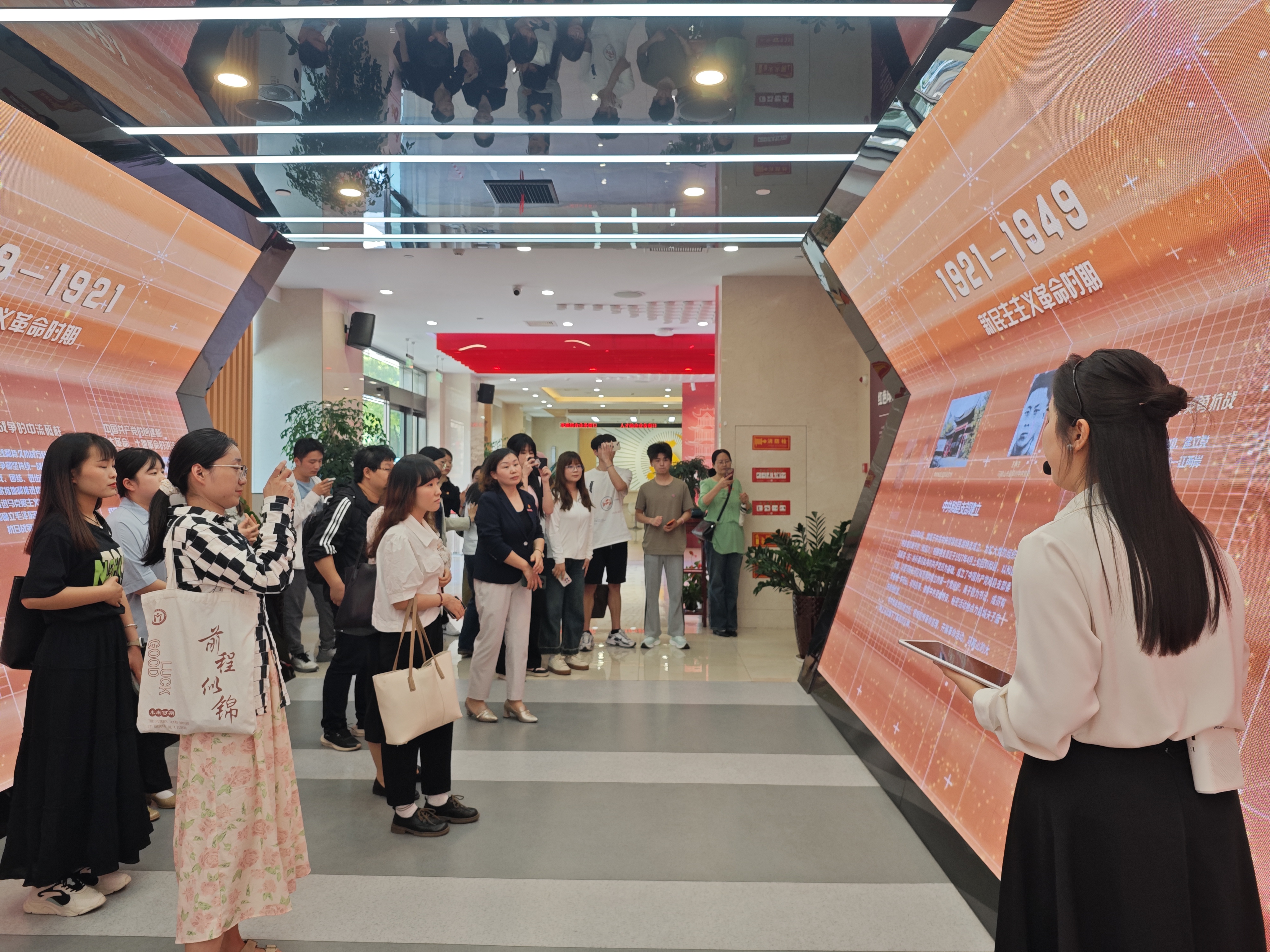 在讲解员的带领下,教师们参观了“一站式”服务大厅,踏上见证建党百年历史的“时光长廊”,参观了党建主题展厅和功能馆室,通过了解先辈和典型人物的事迹,进一步学习习近平新时代中国特色社会主义思想从酝酿、积淀到形成、丰富发展的全过程,回顾马鞍山党史,同时还参观了支部活动室、非公党建工作站以及人才会客室。