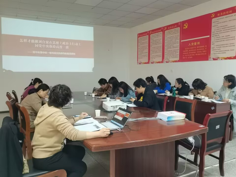 按照学习贯彻习近平新时代中国特色社会主义思想主题教育要求,4月26日下午马克思主义学院在C507会议室组织召开题为“怎样才能做到自觉在思想上、政治上、行动上同党中央保持高度一致”的教育专题党课,常务副院长刘双、院长助理张春艳、各教研室主任、综合办公室负责人及马院全体老师参会,由刘双主讲。