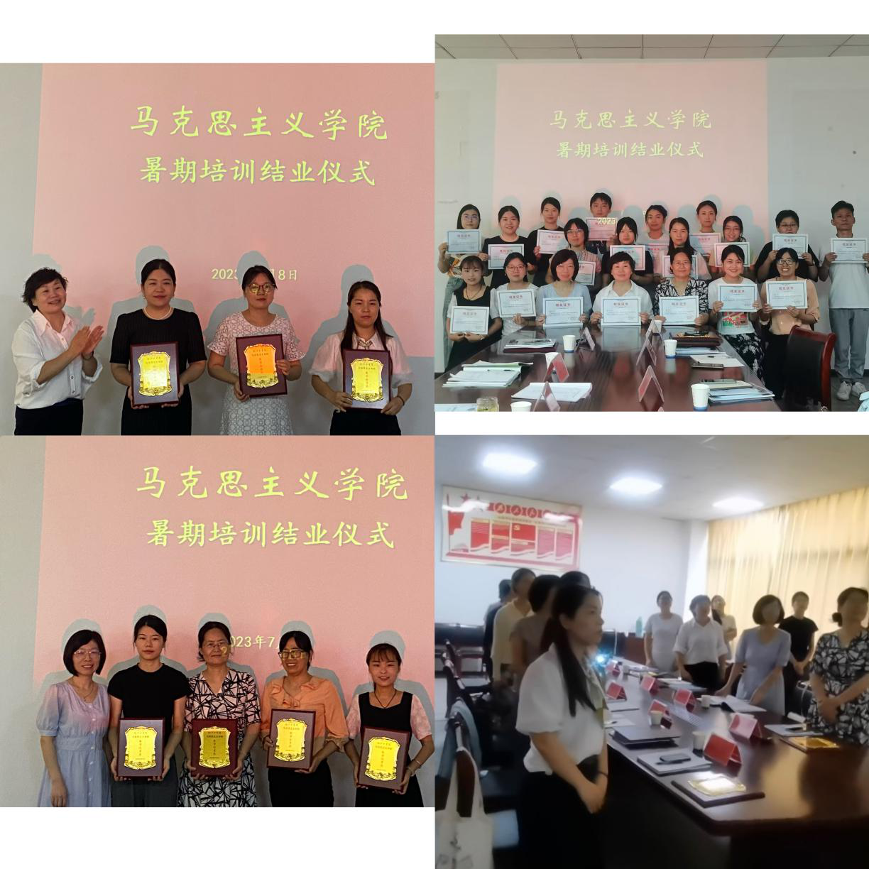 在培训期间,学院借机对思政课教师讲课大赛的金课奖、教坛新秀、创新奖等获奖教师进行颁奖,在结业仪式上,全体教师共同宣读了习近平总书记关于思政课教师的六个要标准。