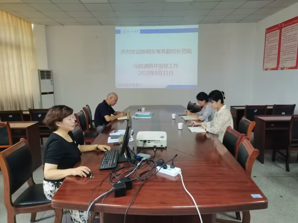 2023年8月31日下午,副校长郑明东来到马克思主义学院进行现场调研,马克思主义学院常务副院长刘双,德法与马原教研室主任赵萍,综合办负责人王琪参加调研会,会议由刘双主持。