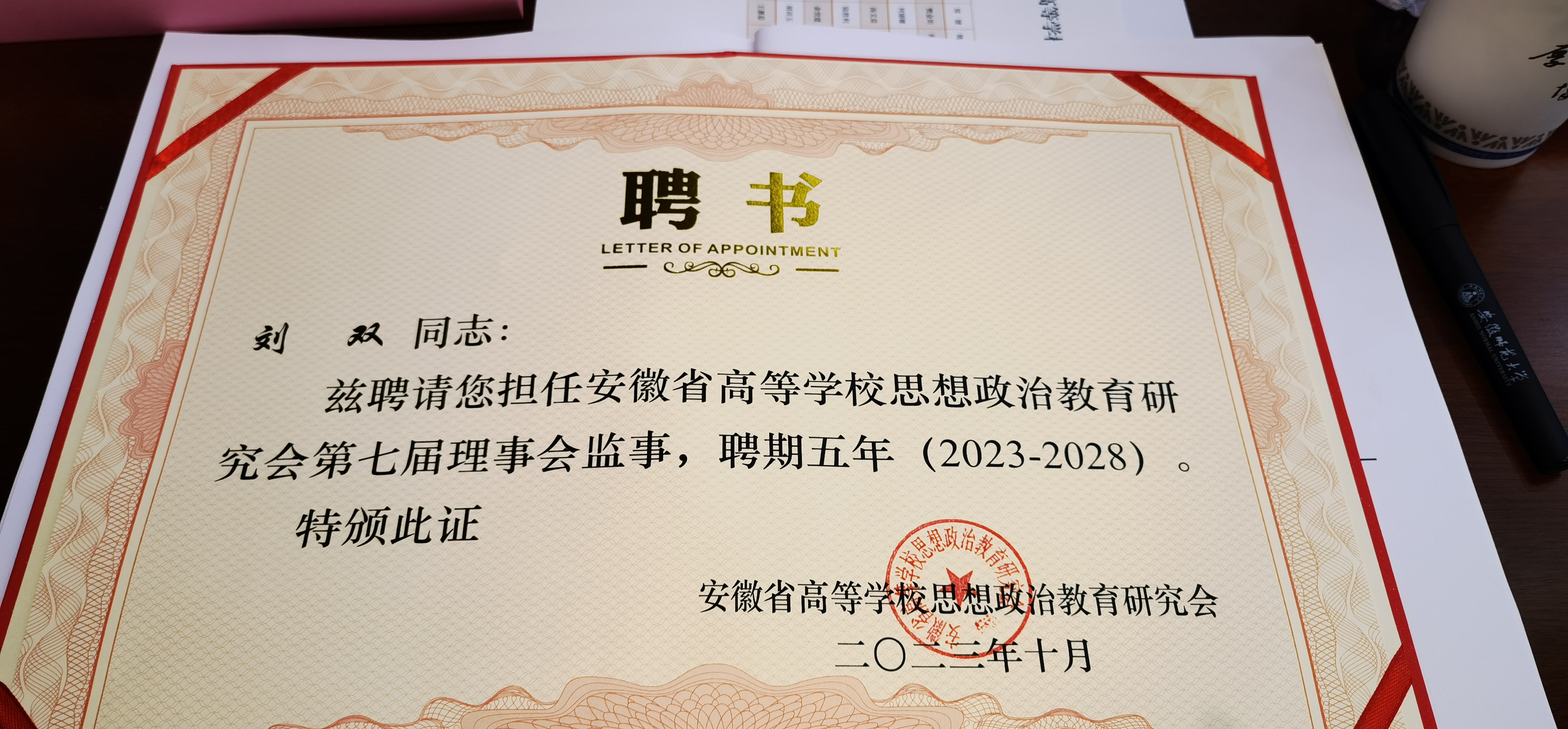 我院常务副院长刘双当选安徽省思政研究会监事