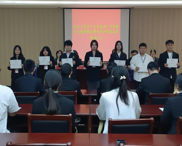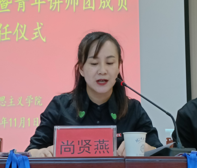 仪式上,尚贤燕代表校团委致辞,他表示,思政课是落实立德树人根本任务的关键课程,“大思政课”我们要善用之,会上,她提出三点希望,首先希望两团的成员要以高度的使命感,严肃认真地理解宣讲工作,发挥学生干部的引领示范作用。其次要以求是的责任感,以身作则,率先垂范,先学一步,学深一层,带头践行马克思主义。第三,要创新宣讲形式,并细化弄清讲什么,谁来讲,怎么讲,谁来听,效果怎么样五个问题。