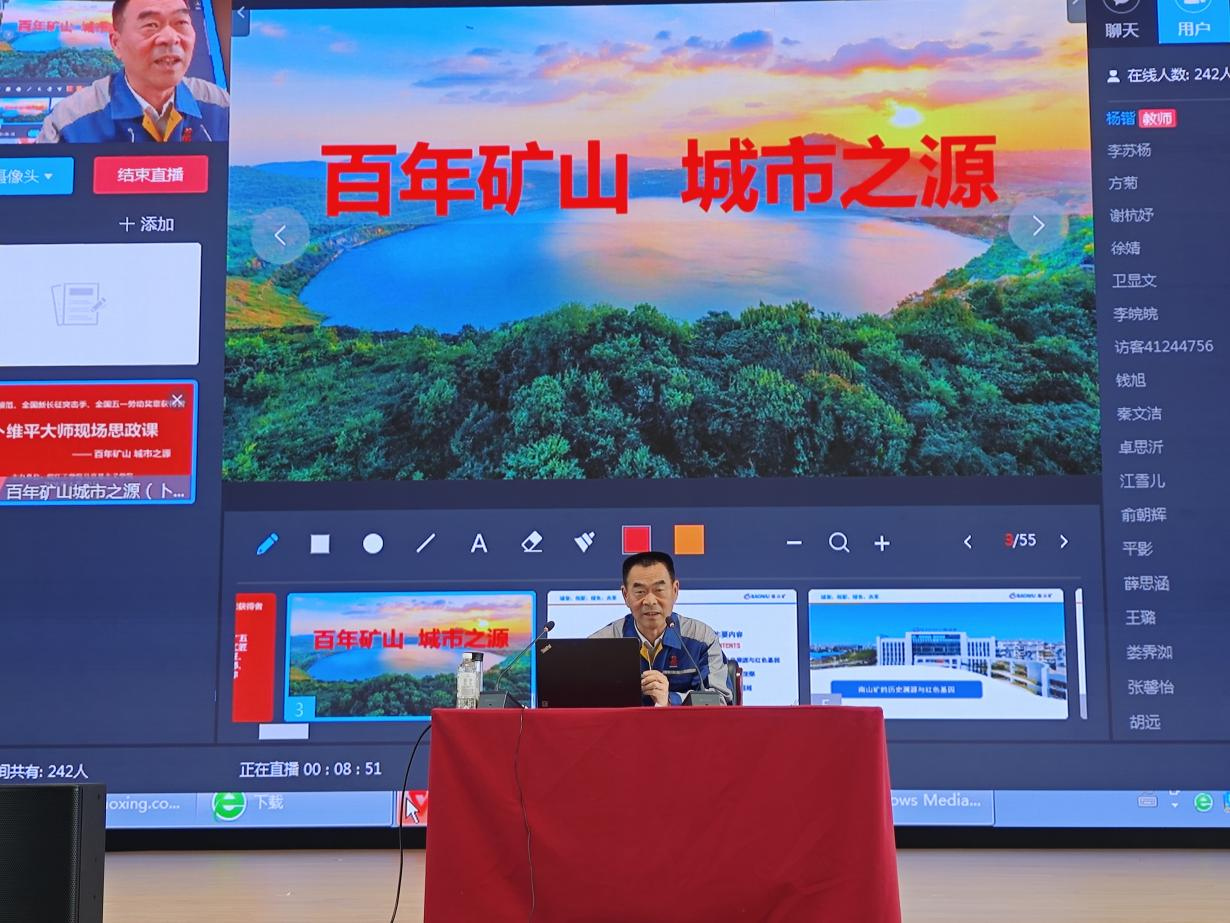 卜维平围绕“南山矿的历史溯源与红色基因、凹山采场的凤凰涅槃、忠诚敬业、自我超越”三个篇章进行授课。他从南山矿区的第一个党支部——梅子山党支部应运而生讲到荣获第一批“全国群英会红旗单位”历史,从弘扬“凹山大会战”精神讲到打好新时代“向山大会战”精神,从扎根矿山的普通电铲车司机到全国技能大师的成长历程。他在实践中践行着认识岗位、热爱岗位、胜任岗位、奉献岗位的初心和使命,以生动形象的故事诉说着在生产实践过程中如何“立足岗位忠诚敬业 岗位创新自我超越”。他强调,一个人的成功离不开勤奋和实干,广大青年生逢其时,要珍惜大学的美好时光,刻苦钻研,努力学习文化知识,为今后工作打下良好的基础,将个人理想与祖国建设和推动社会主义现代化建设紧密融合,创造美好人生。
