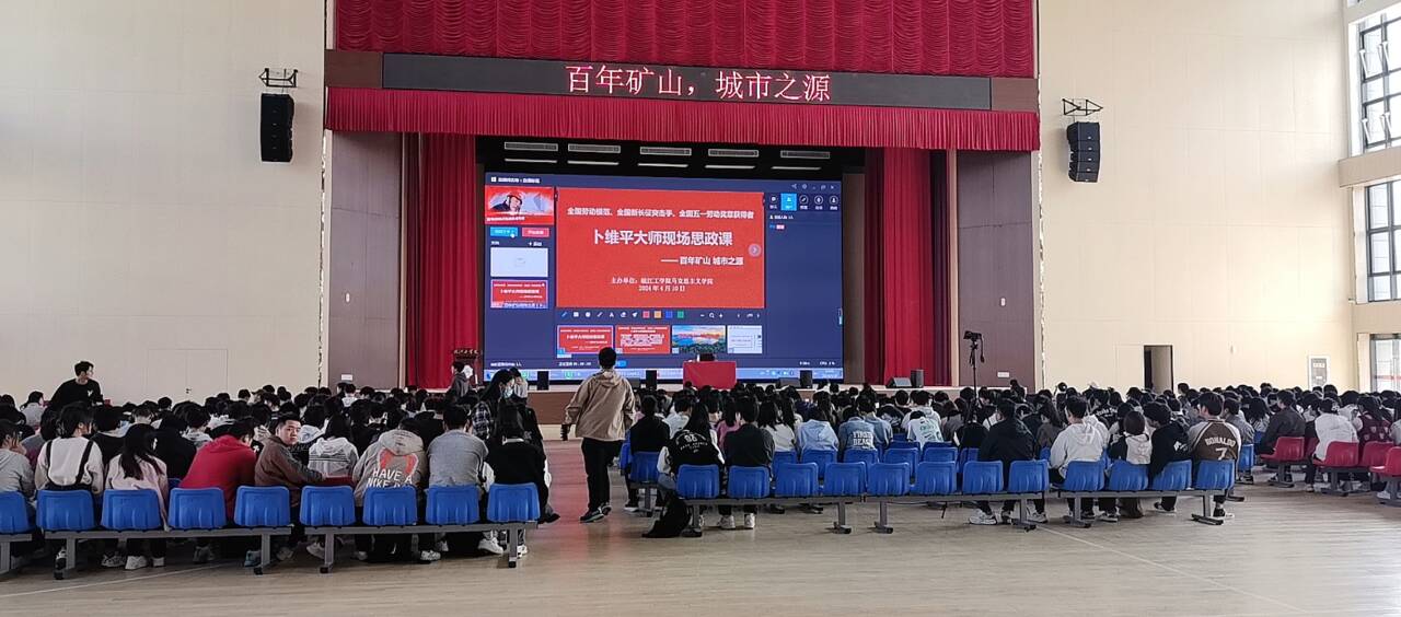 4月10日,马克思主义学院邀请劳模大师卜维平在学校体育馆为22级学生上“大思政课”。卜维平大师扎根矿山42年,拥有国家授权专利71项,带领团队完成创新革新成果1353项,曾获得全国劳动模范、全国新长征突击手、全国“五一”劳动奖章、中国工匠精神奖、全国技术能手、杰出工匠等诸多荣誉。从宝武资源马钢矿业南山矿业公司退休后,受聘为“中国劳动关系学院—新时代产业工人教育研究中心”研究员、“宝武资源有限公司创新研修会”顾问等职务。讲座由马克思主义学院总支书记、常务副院长刘双主持,马克思主义学院全体教师及22级概论实践课学生聆听授课。