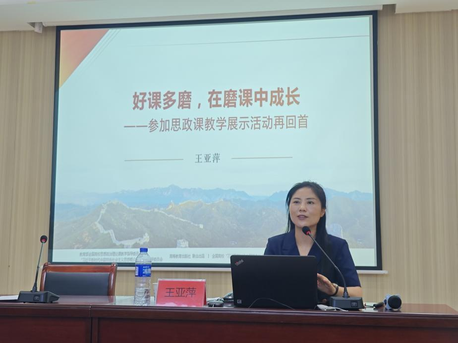 刘双作总结时讲到,感谢王老师的倾囊相授,王老师讲课生动精彩,这次授课,对我院思政课教师展示了高超的方法和精湛的讲课工艺,清晰严谨的逻辑思路,使教师们感到差距、看清前路。并鼓励老师们以王老师为榜样,戒骄戒躁,认真磨课,深耕课堂,争取在生活中、实践中渗透家国情怀,彰显思政课教师职业素养,做一名合格的思政课教师。(编辑:王琪 审核:刘双)