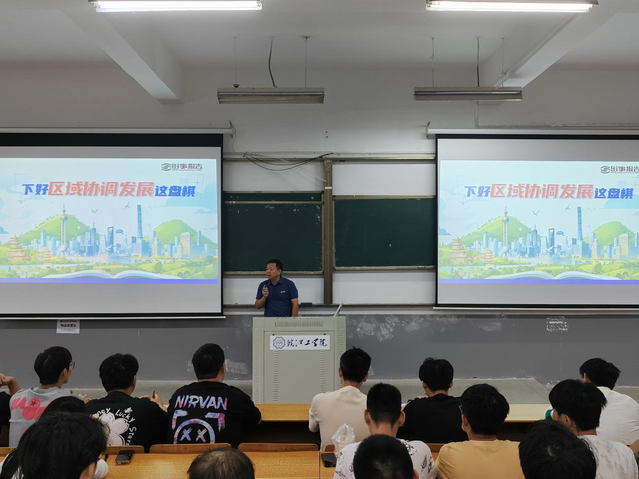 副校长侯进元以“下好区域协调发展这盘棋”为题,为23水工专业的学生讲授思政课。围绕“区域协调发展的特征、历史性成就变革、面临问题和挑战及做法”阐释协调是高质量发展的内生特点,并结合各自的工作生活经历,向学生分享了区域协调发展的案例。