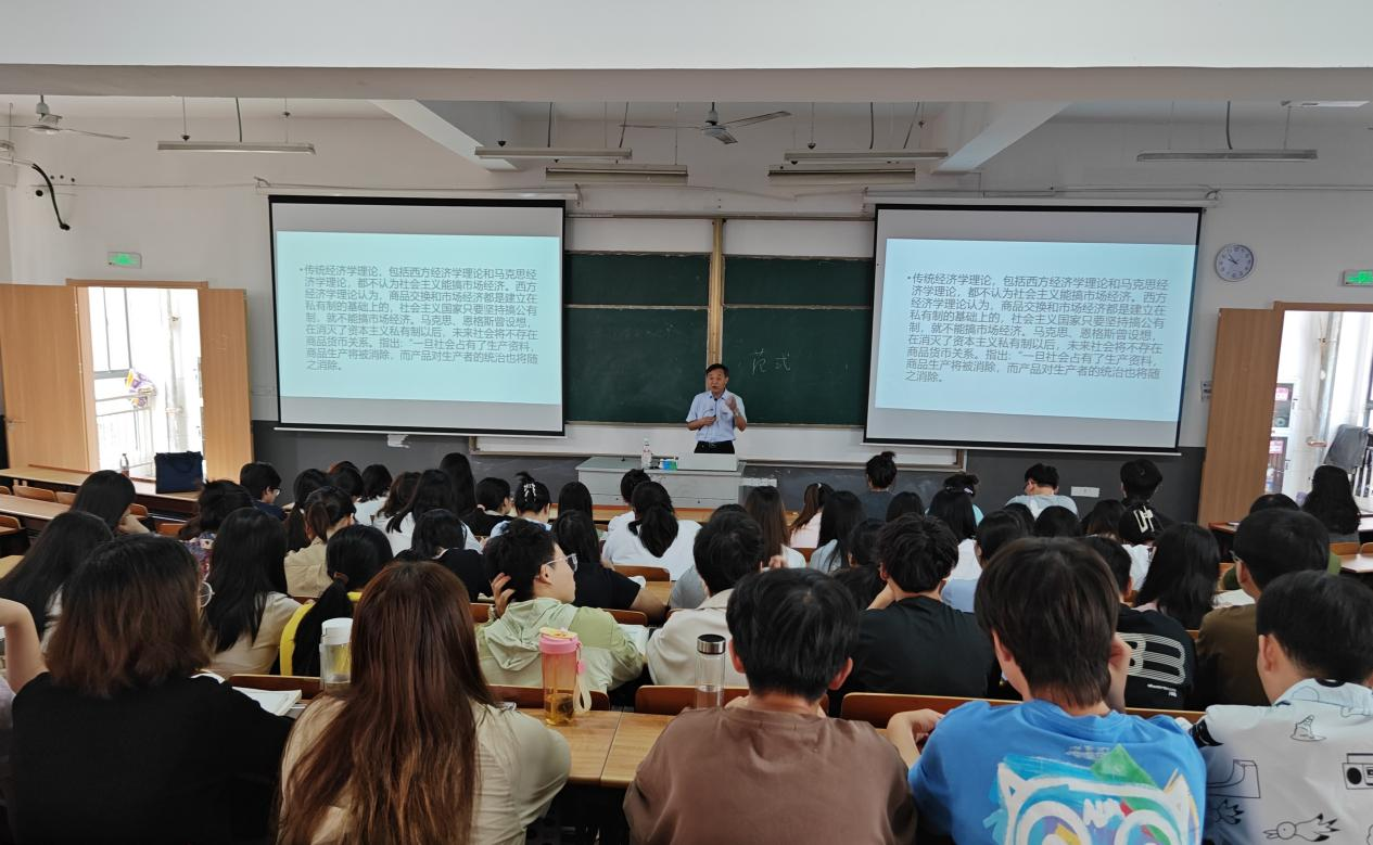 党委副书记孙良以“构建高水平社会主义市场经济体制——《中共中央关于进一步全面深化改革推进中国式现代化的决定》”为题,为21级人力资源管理专业同学们上了一堂精彩的思政课。他结合自己的学术研究与专业领域,从我国社会主义市场经济体制提出的背景讲起,引入邓小平南巡路上的事迹,生动形象的讲述了社会主义市场经济体制的形成与发展。同时,讲到构建高水平社会主义市场经济体制的六项关键任务,同学们听课认真,反响热烈,取得了较好的教学效果。