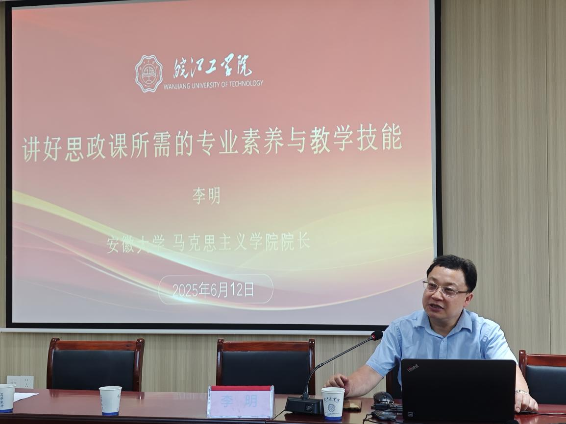 6月12日上午,安徽大学李明到马克思主义学院党员活动室作《讲好思政课所需的专业素养与教学技能》讲座,安徽大学马克思主义学院李明教授,马克思主义学院常务副院长刘双,教学副院长胡耀东、教研室主任及马克思主义学院全体教师参加。会议由刘双主持。