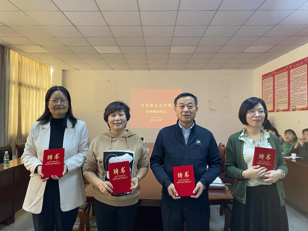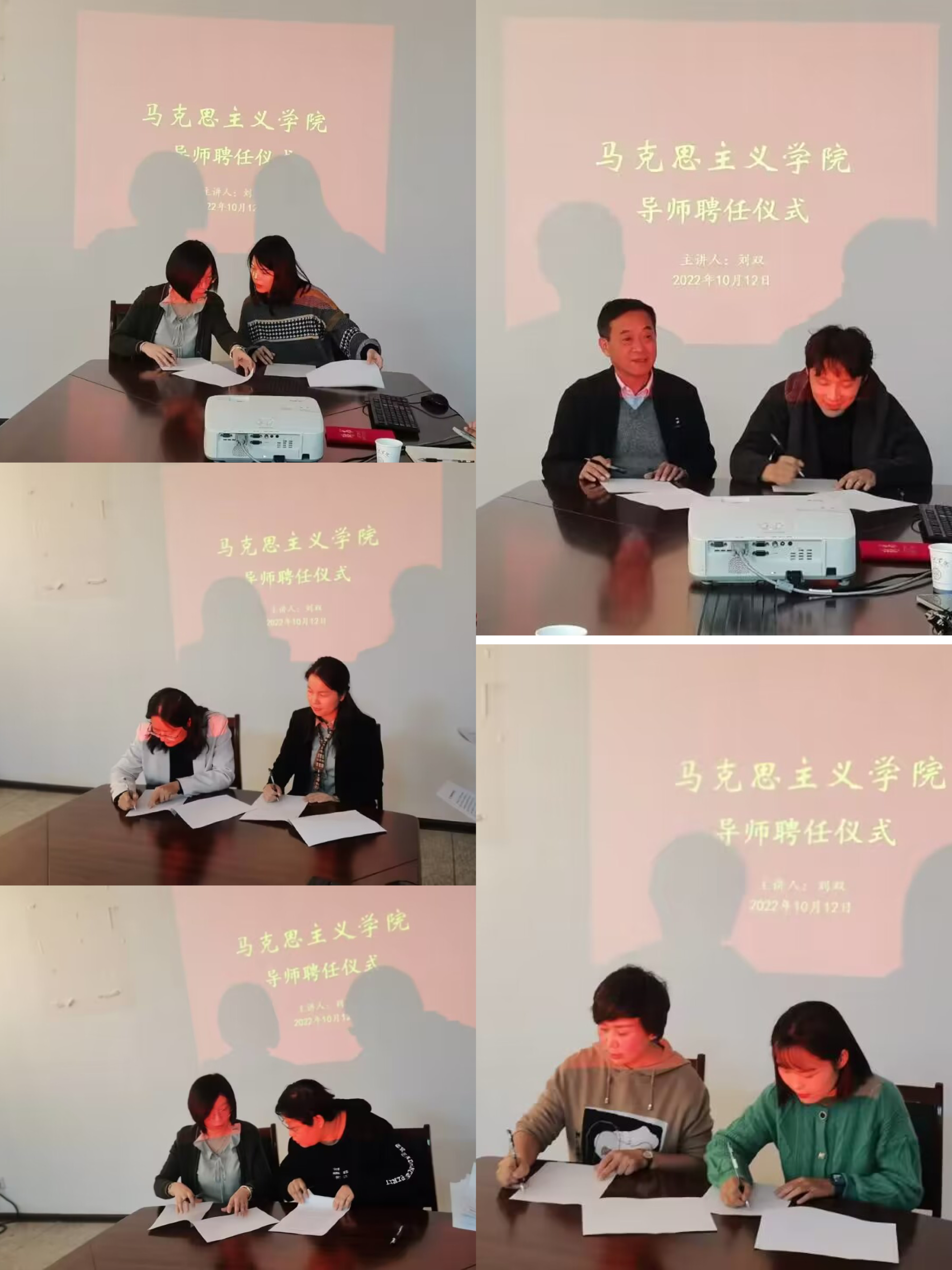 会上,刘双表示,马院导师聘任依据学校的文件,结合马院师资情况,拟确定青年教师导师资格,同时按照双向选择的规范化程序确定导师所带青年教师人员,最后经过马院教学委员会讨论通过后,上报学校教学委员会审批通过后最终确定。她宣读了《关于聘任张春艳等为马克思主义学院导师的决定》新利体育手机端官网登录入口马教〔2022〕01号文件。随后,孙良依次为受聘导师颁发了导师聘书并签订协议书,发放培养书册。