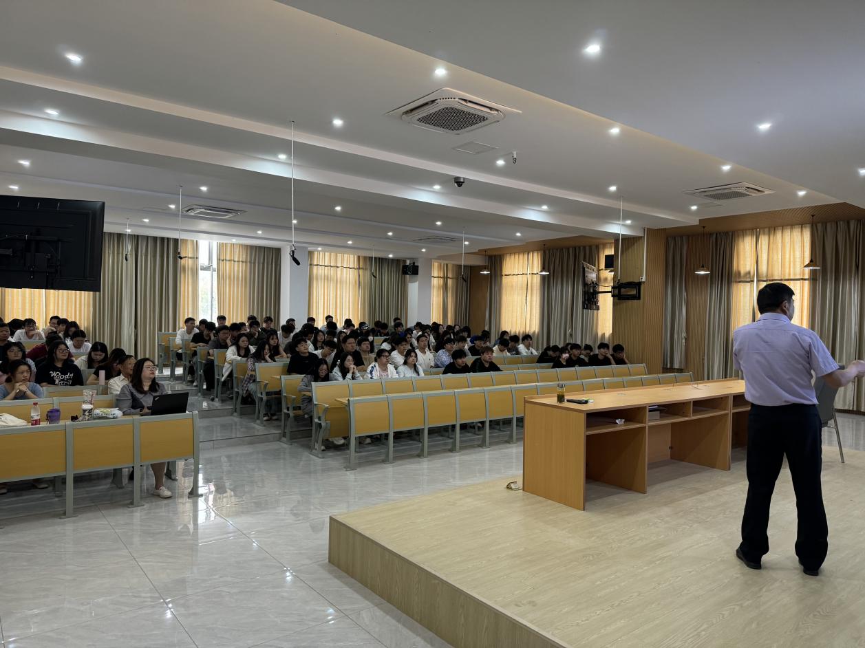 河海大学刘斯宏教授应邀作《抽水蓄能电站枢纽布置及主要水工建筑物》专题讲座。水工专业负责人沈长松、水工教研室主任田晓丹、水工专业课教师以及150余名水利水电工程专业学生共同聆听了讲座。讲座由田晓丹主持。
