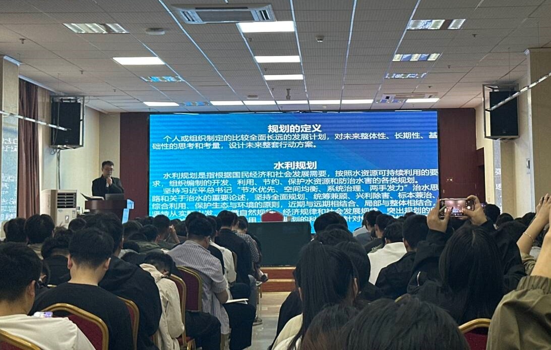实习期间,淠史杭灌区管理总局贺亚斌副处长与安徽省水利厅专家张玉田分别带来《灌区规划与实践报告》和《淠史杭灌区标准化管理工作报告》。丰富的实例与图片展示,让同学们对灌区全貌有了更深入的理解,收获颇丰。