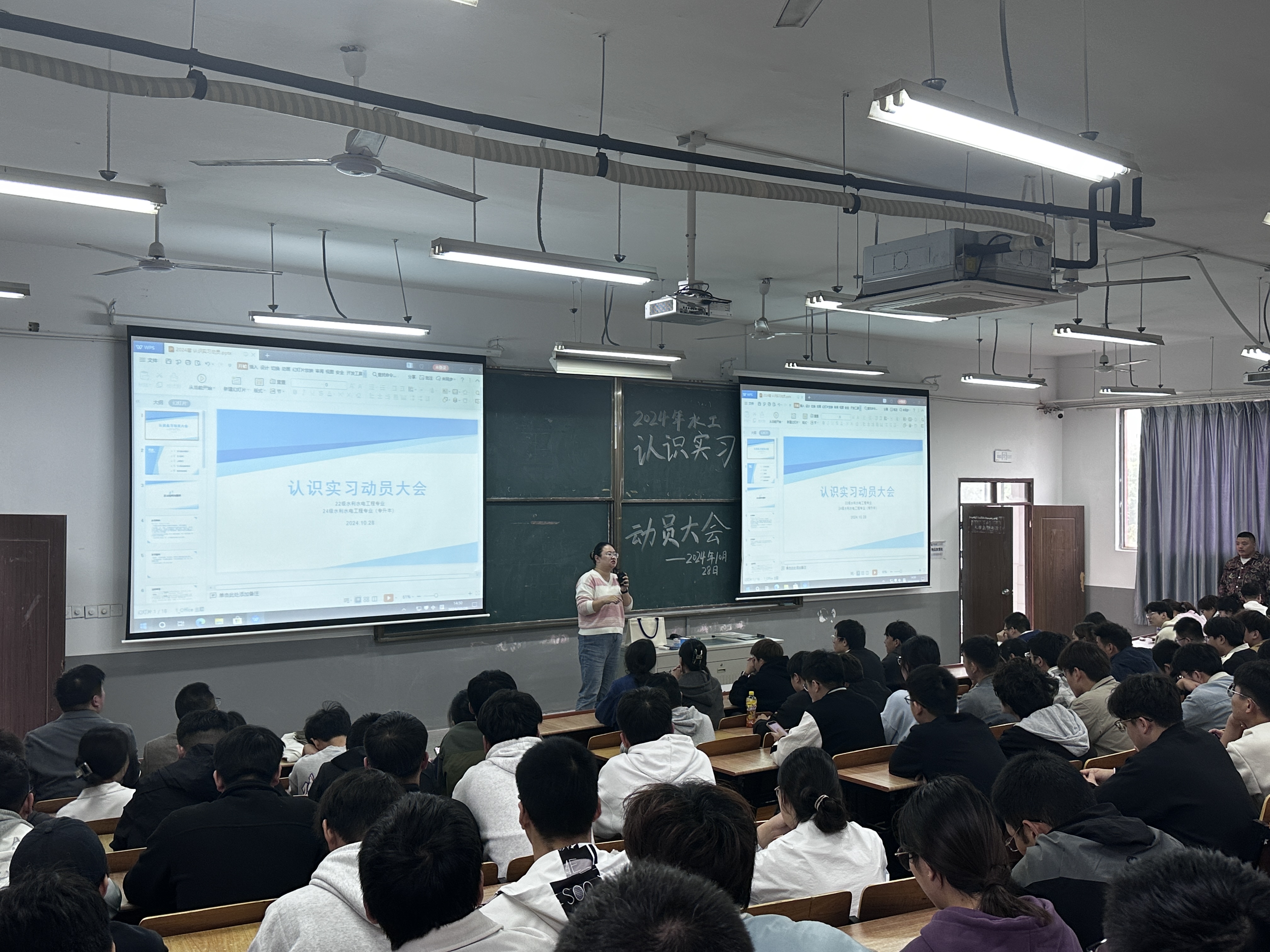 10 月 28 日,实习动员会上,院长助理、水工教研室主任田晓丹详细解读水利相关方针政策与行业发展趋势,帮助同学们明确学习目标。实习负责人、水工教研室副主任唐雨卉着重强调安全注意事项与实习安排,要求同学们在实习途中及进入现场时遵守纪律,发扬团结互助的高尚风格,注意文明礼貌,并希望同学们做好实习准备工作,带着问题去学习,做到“多问、多听、多看”,争取有大的收获。