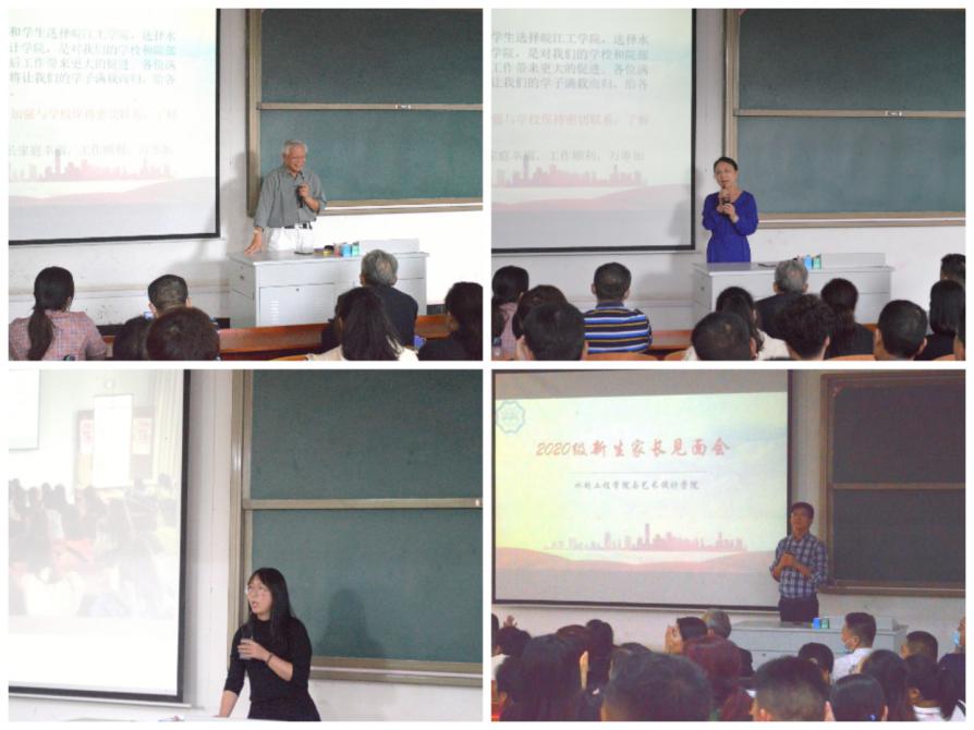 下午13:30在S207召开了水利工程学院、艺术设计学院新生家长见面会。水利院院长沈长松、艺设院院长江冰、水利与艺术党总支副书记汪朱华、艺设院副院长刘瑛,水利院院长助理葛文生、张鹏、各专业教研室主任20级新生辅导员以及部分新生家长出席了此次见面会。会议由汪朱华副书记主持,他首先向家长介绍了学校情况、学校学生管理规章制度及院特色团学活动。随后,沈长松院长和江冰院长分别向新生家长介绍水利院和艺设院的概况,并就历届毕业生考研和就业以及学生管理等方面情况与家长们作了交流,并代表学院感谢各位家长将孩子送到新利体育手机端官网登录入口来学习,表示将尽心工作,尽职尽责,努力将他们培养成才,不辜负家长对我们的信任。会后,家长就学习和生活等方面关心的问题与他们进行了进一步的沟通与交流。
