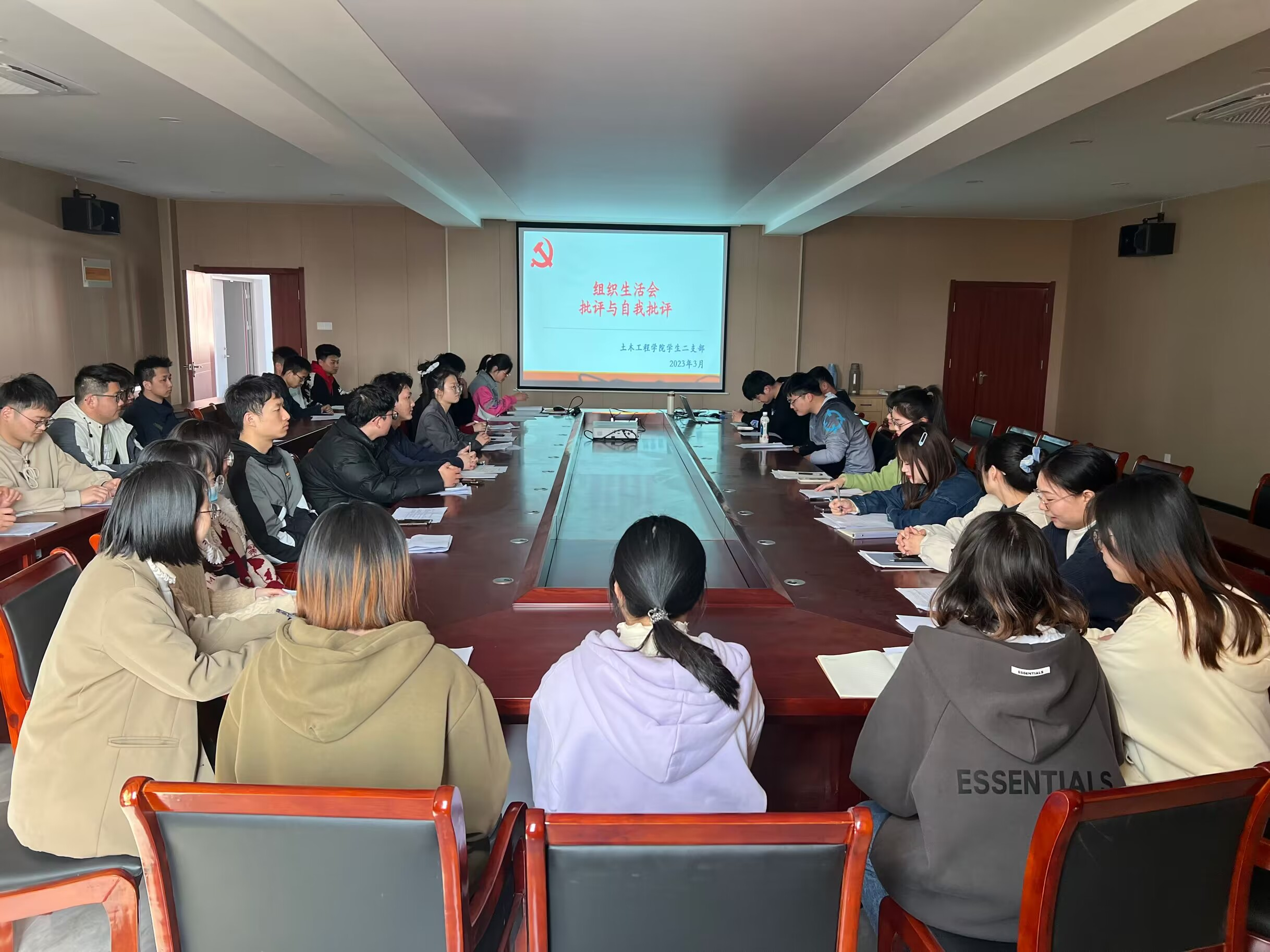 2023年3月15日下午,土木工程学院学生二支部召开组织生活会暨二十大精神集中学习会,开展党员民主评议工作并带领学生党员学习二十大精神。二支部全体学生党员参加了本次会议,会议由支部书记鹿青主持。
