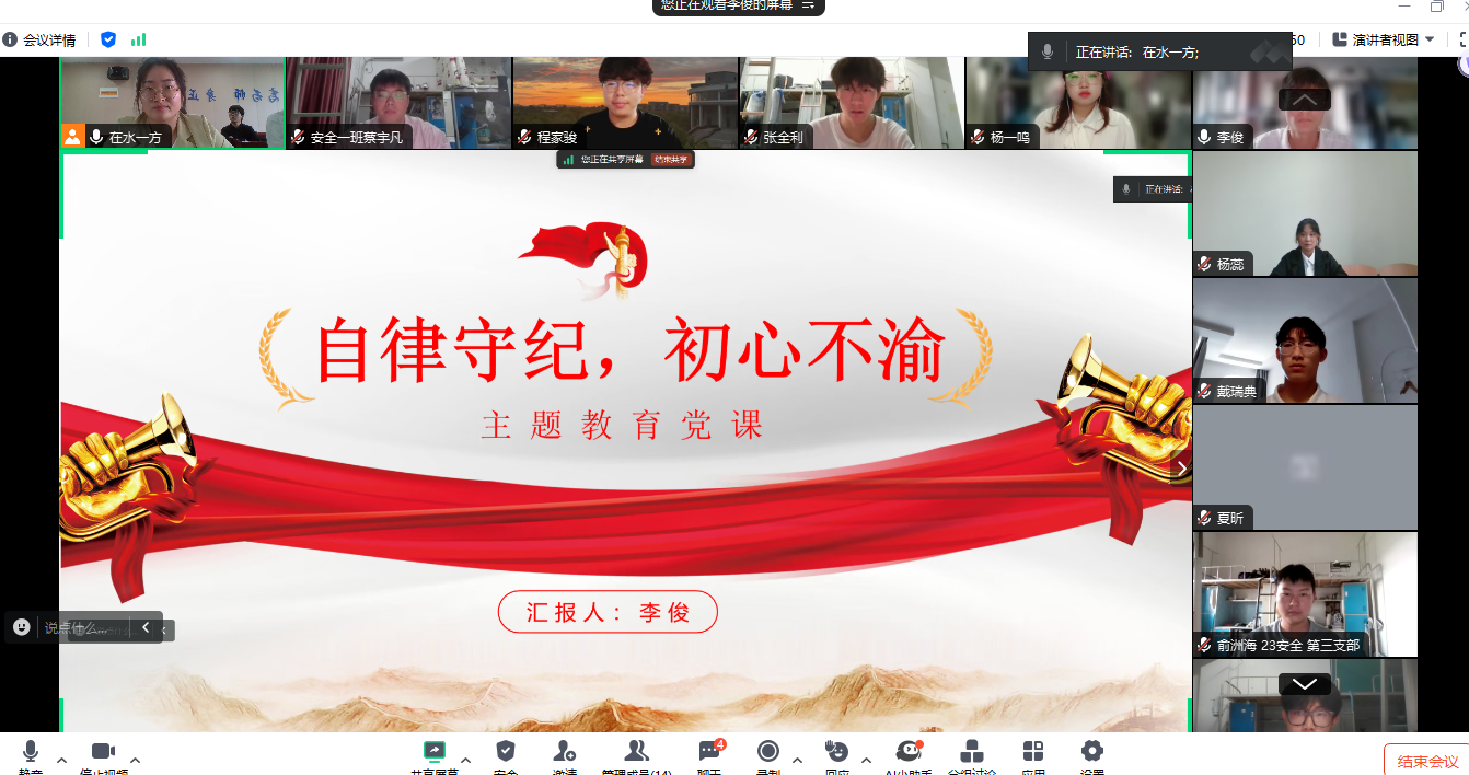 为加强师生党员对党的纪律的学习与理解,进一步提升他们的党性修养和规矩意识,6月6日上午,土木工程学院在水木楼西501开展了以“学纪律,知敬畏,守底线,做表率”为主题的微党课比赛。比赛由学院党总支主办,学院学生第二党支部承办。学院党总支书记王瑜、各党支部书记、支部党员代表及21组参赛选手参加。选手们来自霍里山校区和新利体育在线官网首页登录入口,为解决跨校区问题,本次比赛创新采用线下与腾讯会议线上相结合的方式进行。