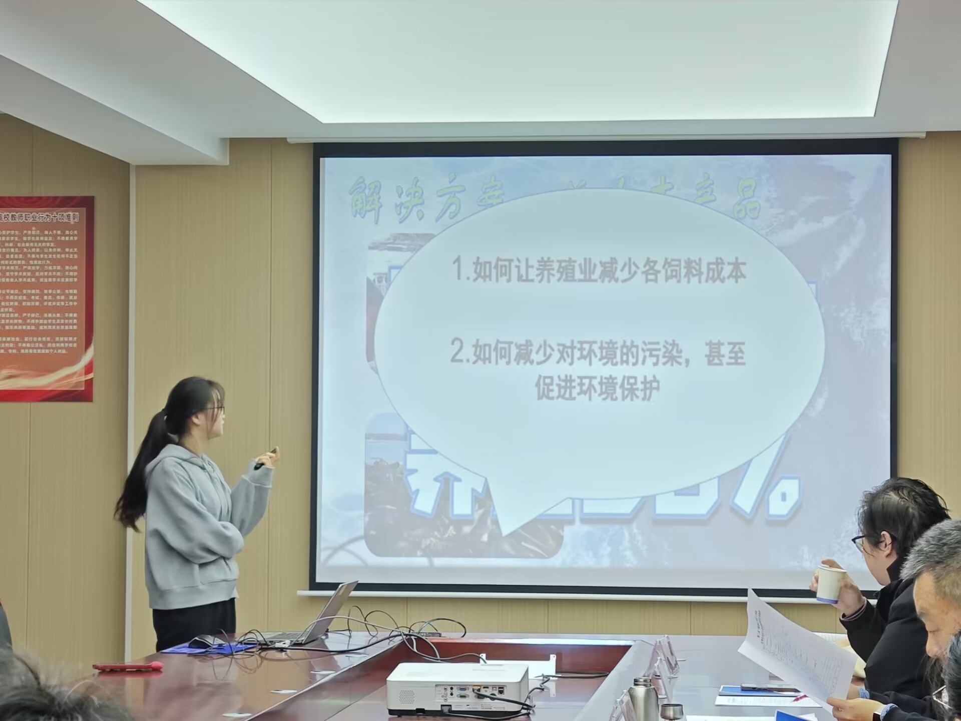 会上,同学们就自己的创新项目进行了PPT展示介绍,从项目背景、研究方法、创新点和实践应用等方面进行了充分的阐述,并展示了所做出的实物模型。