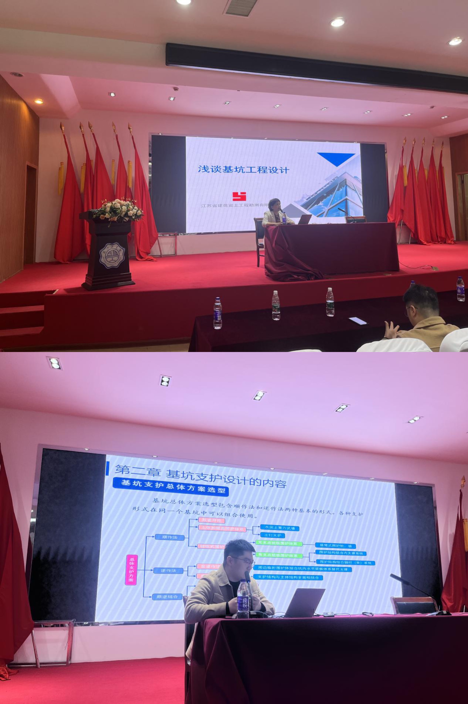 随后,特邀专家吕亚琴和张伟军为全体学生开展了题为《浅谈岩土工程设计》的实习讲座,从基坑工程的基本概念、基坑支护设计的内容、工程案例和实践参观项目简介四个部分进行了讲解。两位专家深入浅出对专业内容进行了悉心传授,会后还与同学们进行了互动交流,详细回答了同学们提出的相关问题。