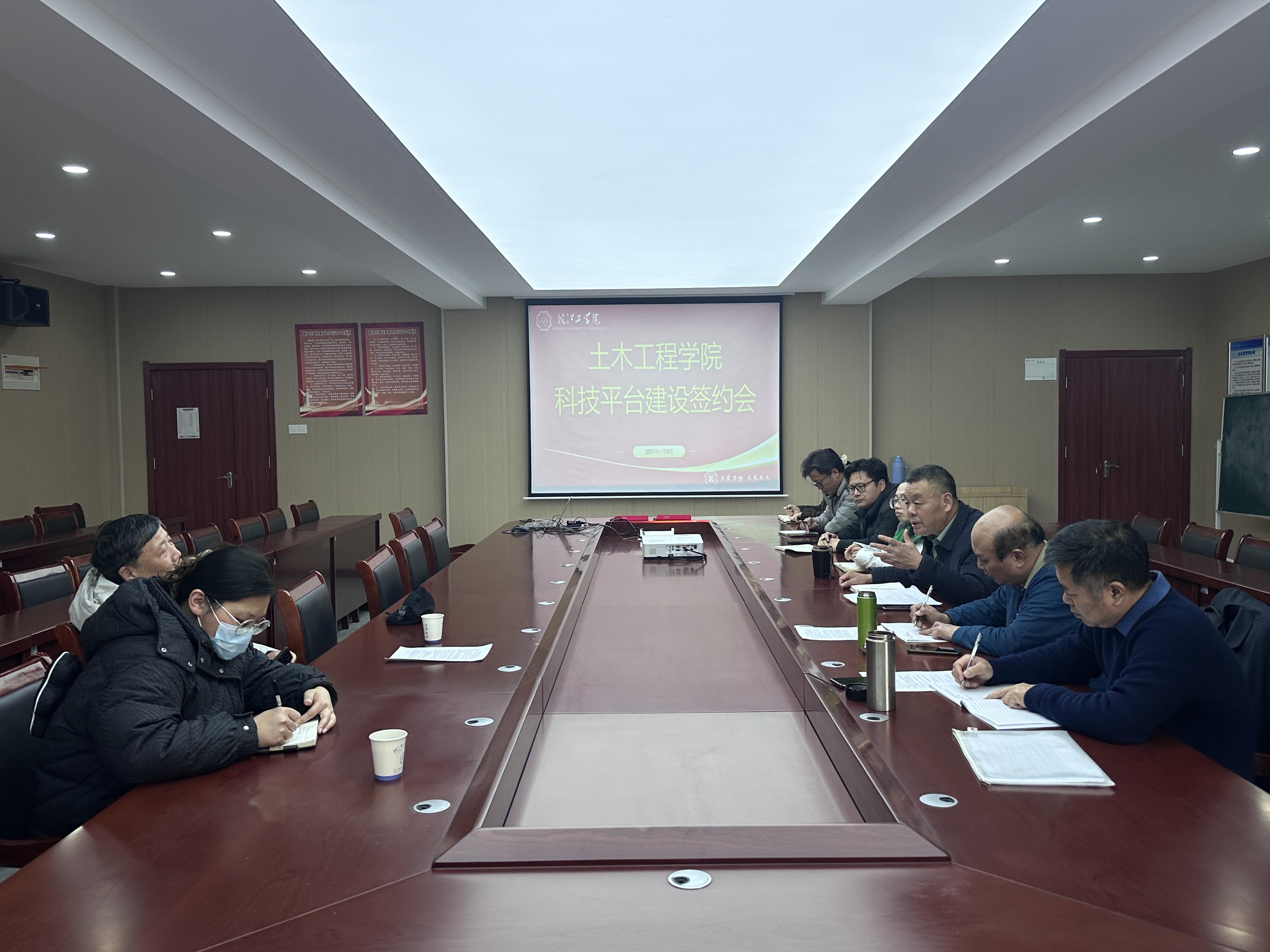 为进一步加强科技创新平台建设工作,提高科研创新水平,1月8日下午,科技部与土木工程学院在水木楼西501举行马鞍山市土地检测、评估与修复工程技术研究中心、材料科学技术研究所、交通工程科学技术研究所等3个科技平台建设签约会。科技部部长胡钢、综合科科长吴毓,学院院长唐德高、院长助理韩雪、银龄教师朱云鹤、方磊、部分博士和高工教师代表等参加。