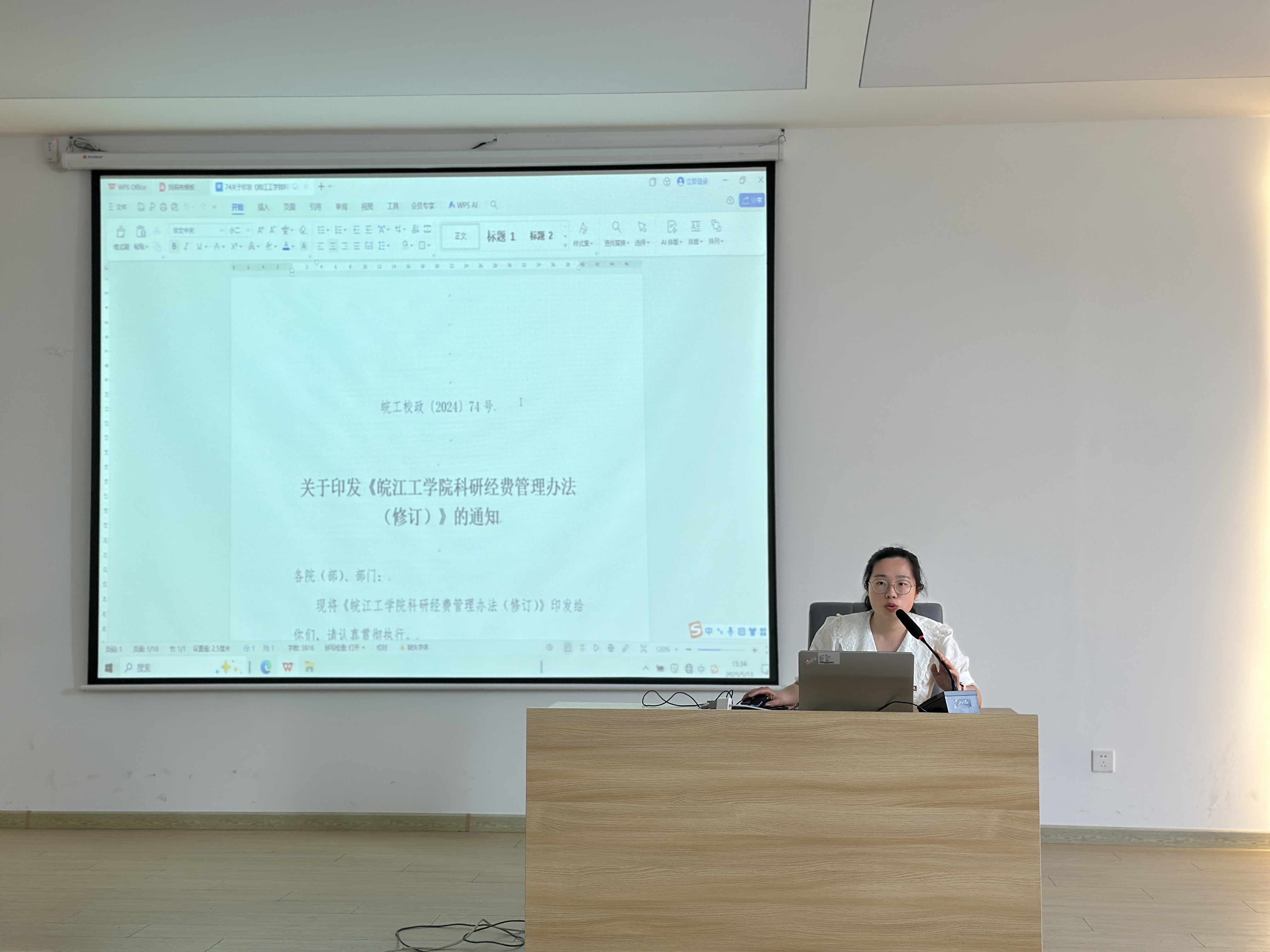 活动最后,学院院长助理韩雪针对前期向全体教职工征集到的关于科研、教研等方面的问题,结合《18新利怎样科研经费管理办法(修订)》《18新利怎样教师工作量计算管理办法(修订)》《安徽省普通本科高等学校教师专业技术资格申报条件》《关于科研论文分值计算的补充规定》等文件,进行了细致的解答。
