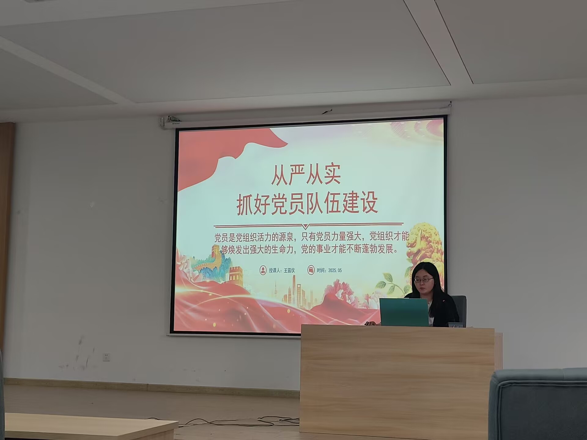 党总支书记王瑜以《徙木立信焕发新活力,干净干事创造新伟业》为主题,结合个人学习体会和学院工作实际,深刻阐释了中央八项规定及其细则在新时代党的政治生活中严明政治纪律、重塑政治生态、取信于民的重要意义,并通过实际案例讲述了自中央八项规定实施以来,党的作风建设取得的显著成效。她要求全体党员要提高政治站位,要充分认识此次学习教育的重要意义,以中央八项规定精神为行动准则,在学习、工作和生活中严于律己,主动发挥党员“双带”作用,以优良党风促校风、带教风、正学风,以担当作为、务实进取的状态为学院高质量发展贡献力量。