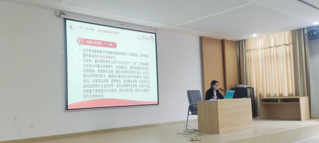 首先,支部书记王露仪围绕从严从实推动新时代党员队伍建设展开了详细的讲解。从健全党的创新理论武装机制、健全发展党员机制、健全党员管理监督机制到健全党员作用发挥机制,讲解结合大学生实际生活深入浅出。党员们全神贯注的听讲,并做了记录。深刻认识到党员队伍是党的事业的中坚力量,通过其建设成效关乎党的事业兴衰成败。