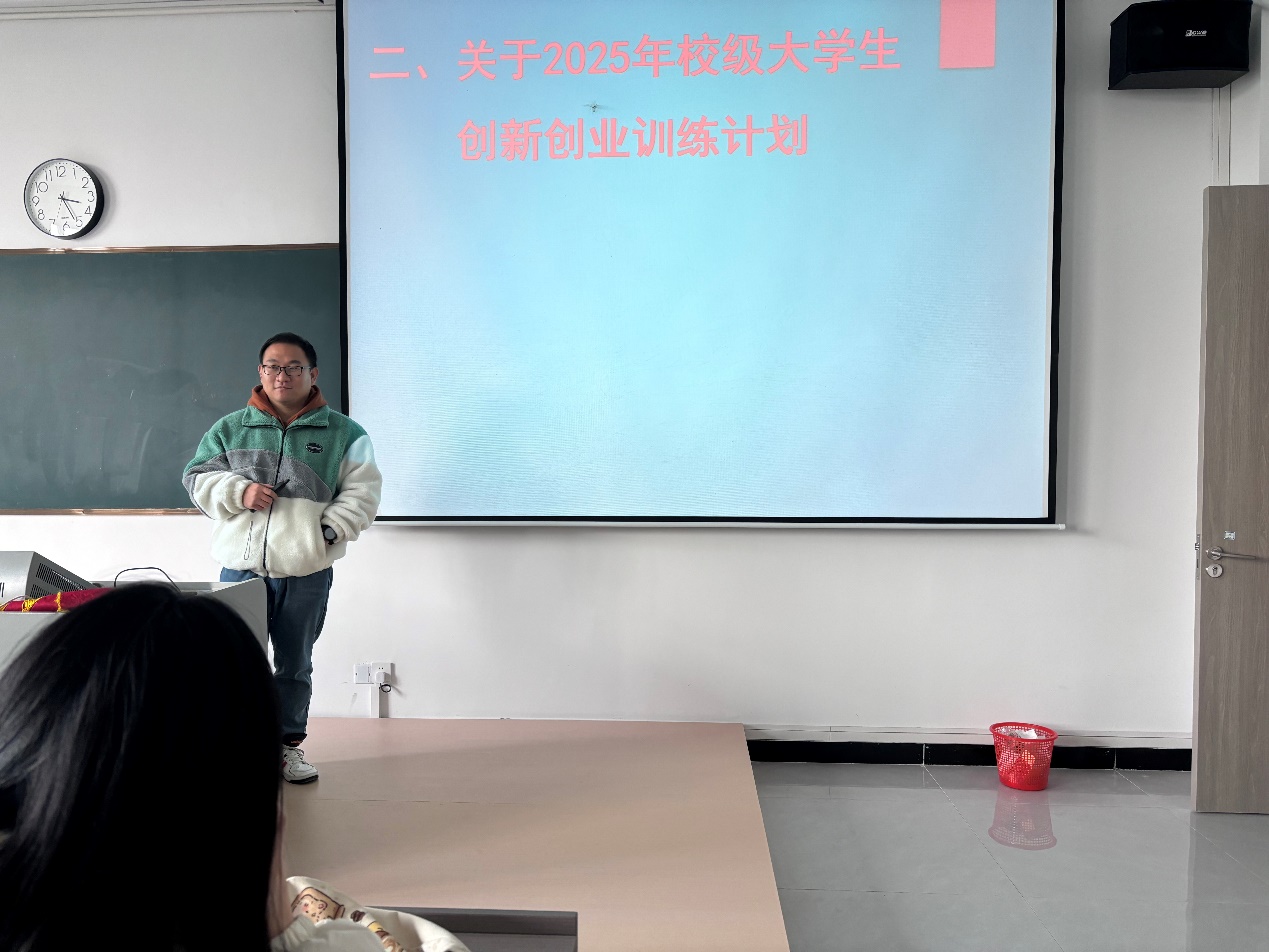 随后, 郭瑞老师又着重介绍了关于2025级校级大学生创新创业训练计划的基本情况、基本条件以及资格条件,动员并鼓励同学们大胆参与并勇于挑战自我,碰撞思维火花,提升创新能力。