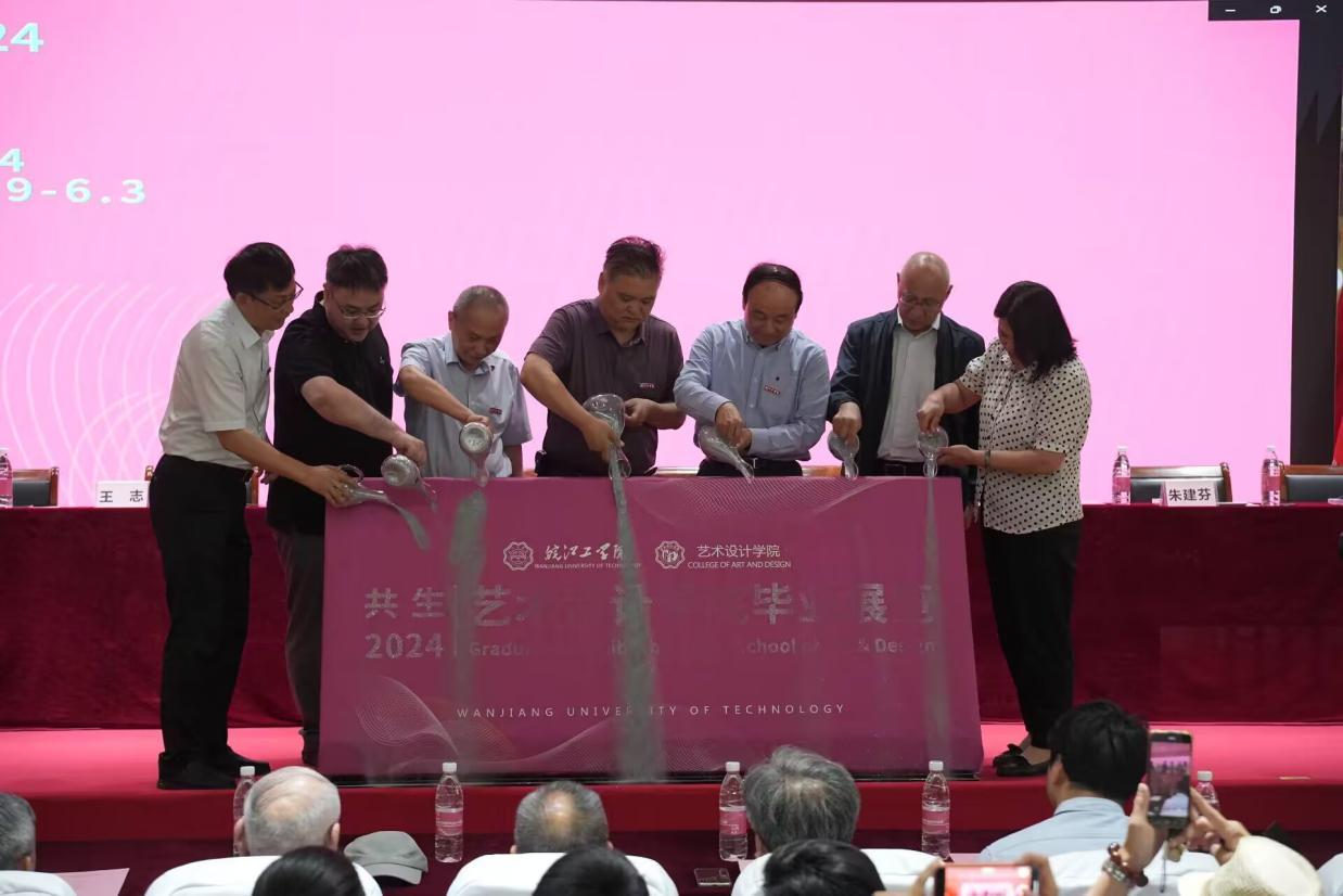 最后,朱洪高董事长与校领导共同启动了创意流沙开展仪式。该仪式预示着我校毕业生将厚积薄发,迎来光辉灿烂的未来。至此,2024届艺术设计学院毕业展正式开幕。