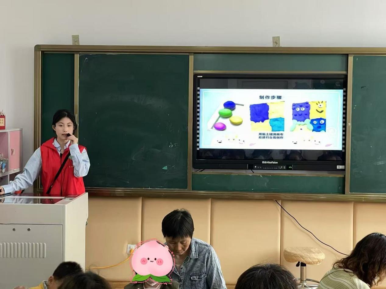 活动当天,志愿者们分为表演组、教学组、创作组和互动组展开活动:表演组由23数媒专业王子豪同学带来《逆战》《孤勇者》两首励志歌曲,激昂的旋律点燃全场热情,不少参与者跟着节奏拍手哼唱,现场气氛热烈;教学组通过视频演示与现场指导,耐心讲解黏土塑形技巧;创作组一对一协助小朋友揉捏、拼接黏土,共同完成憨态可掬的"小怪兽"立体画;互动组则通过趣味故事引导参与者分享创作灵感。经过两小时协作,共完成20余幅色彩缤纷的黏土作品,活动获得市康复中心师生的一致好评。