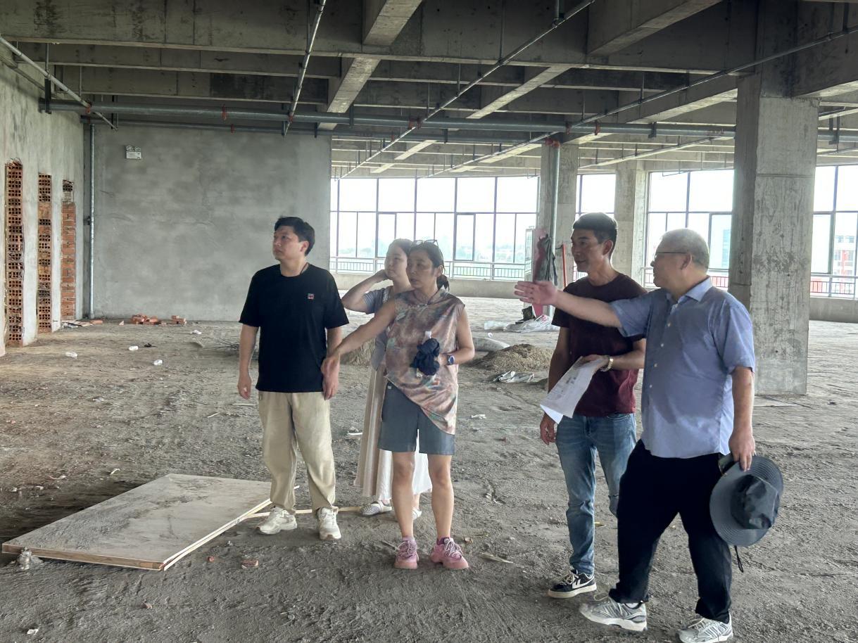 7月15日上午,院长伍旭坤,副院长金花,产品设计教研室主任俞晓宇,美育教研室主任曹哲,实验员郑重前往新利体育在线官网首页登录入口图书馆四楼施工现场,重点就专业教室及实验室的装修工作开展施工对接,保障了新学期新教学环境的需求。(艺术设计学院供稿)