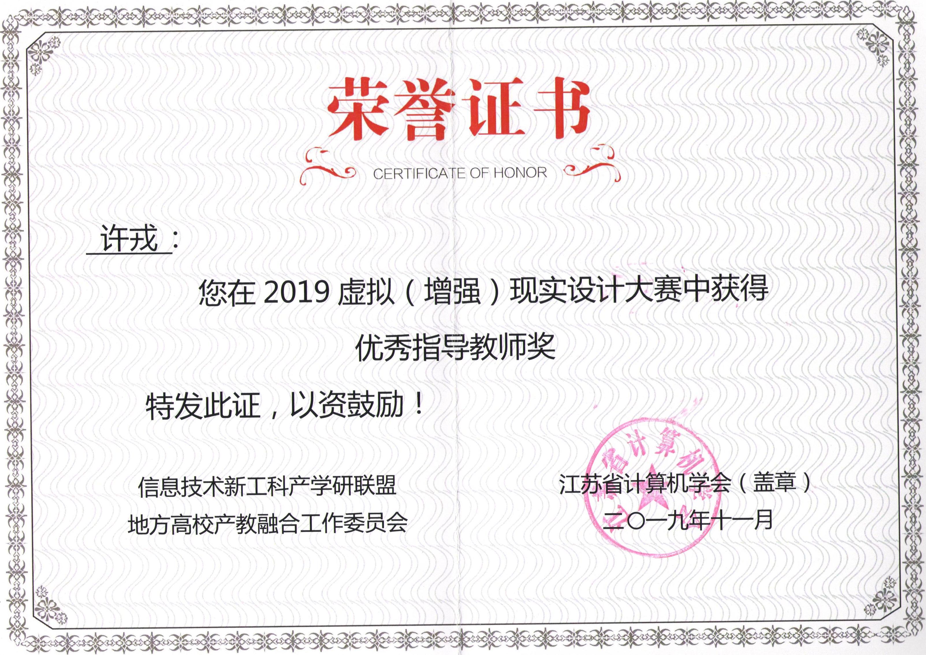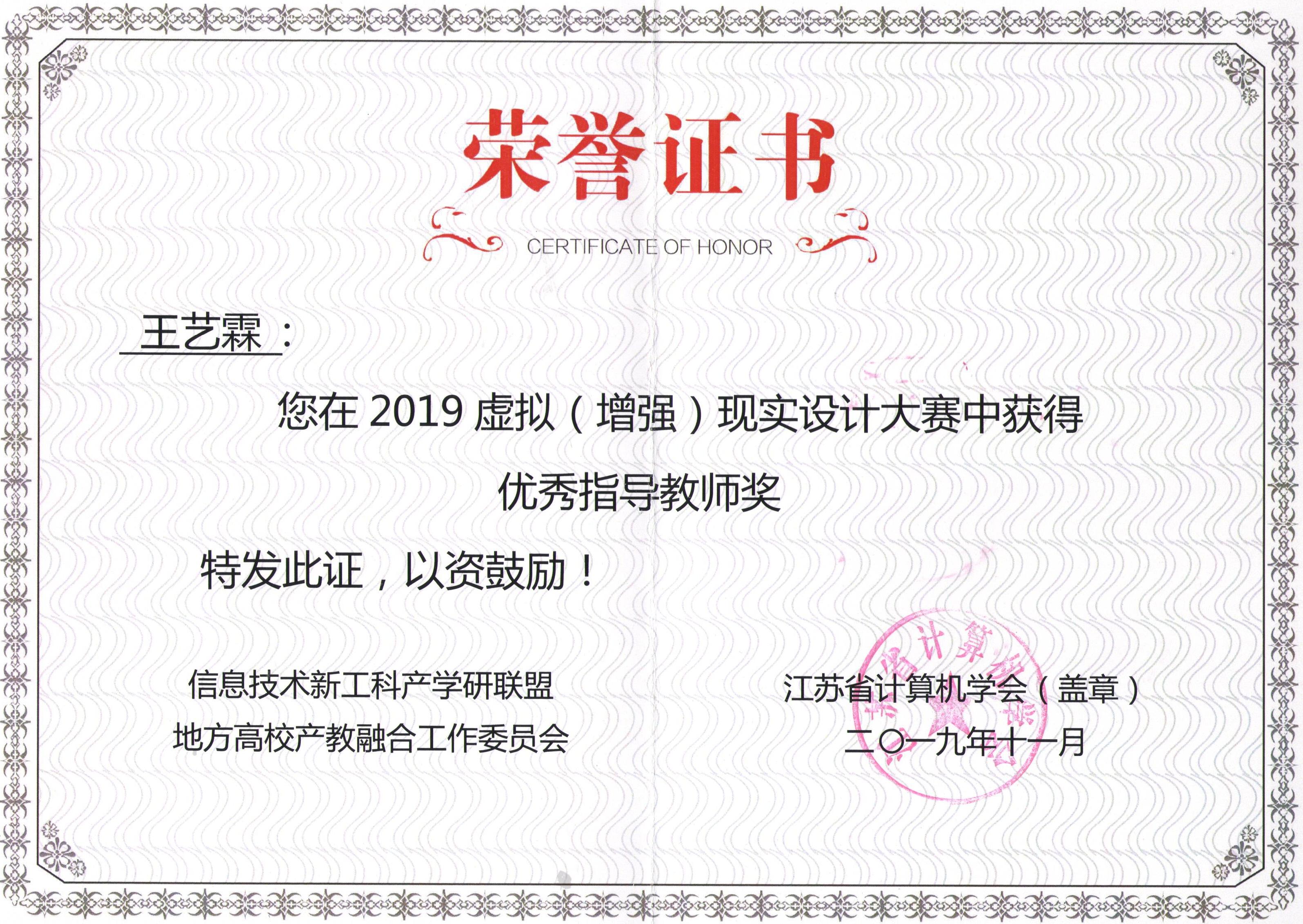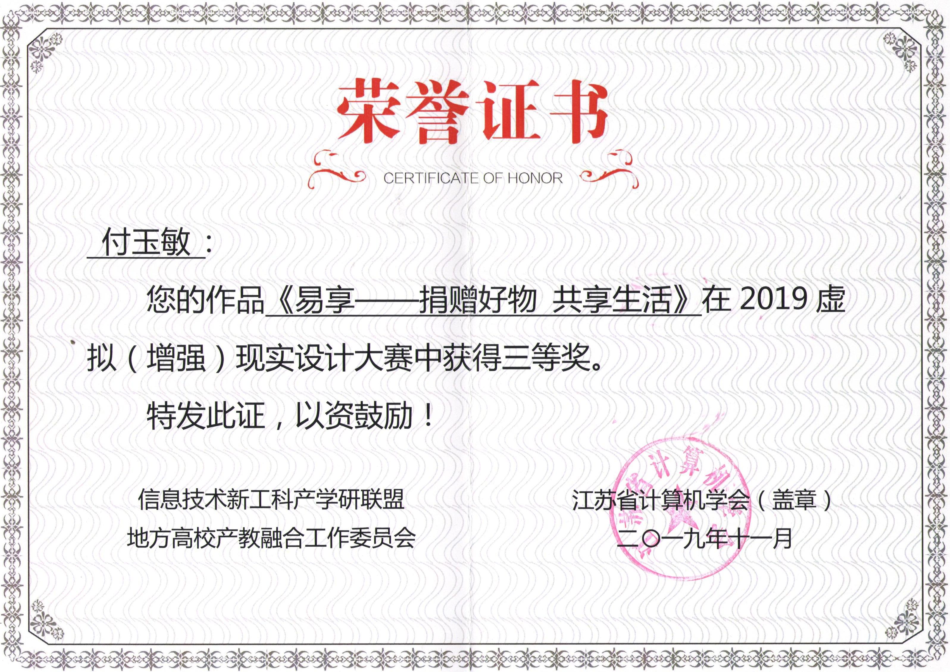 2019年江苏虚拟(增强)现实技术大赛在江苏省新工科教育联盟指导下,由金陵科技学院、江苏省计算机学会及江苏省运动竞技协会主办的一项AR/VR产业重要赛事。本次大赛我校艺术设计学院获得优秀组织奖,刘瑛、曹哲、张慧、施艺、许戎以及王艺霖等数位教师优秀指导教师奖,朱苏滢、付玉敏、陈玥和曹睿等学生分别获得二等奖、三等奖以及优秀奖若干名。