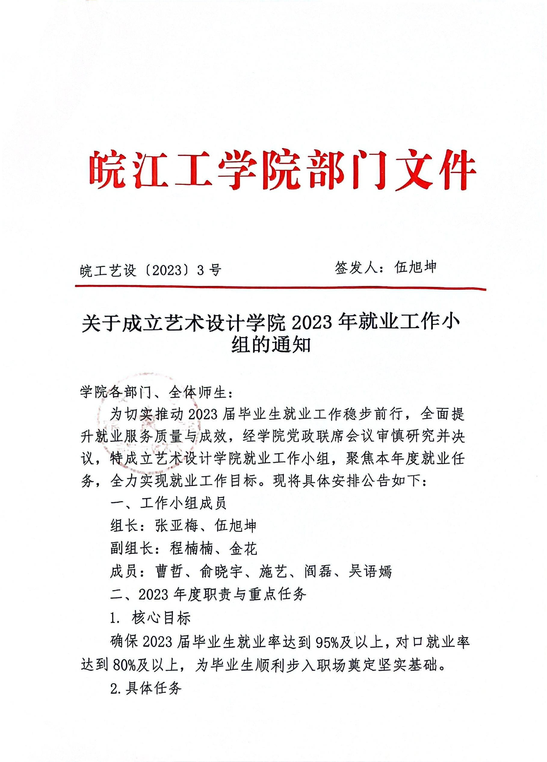 关于成立艺术设计学院2023年就业工作小组的通知