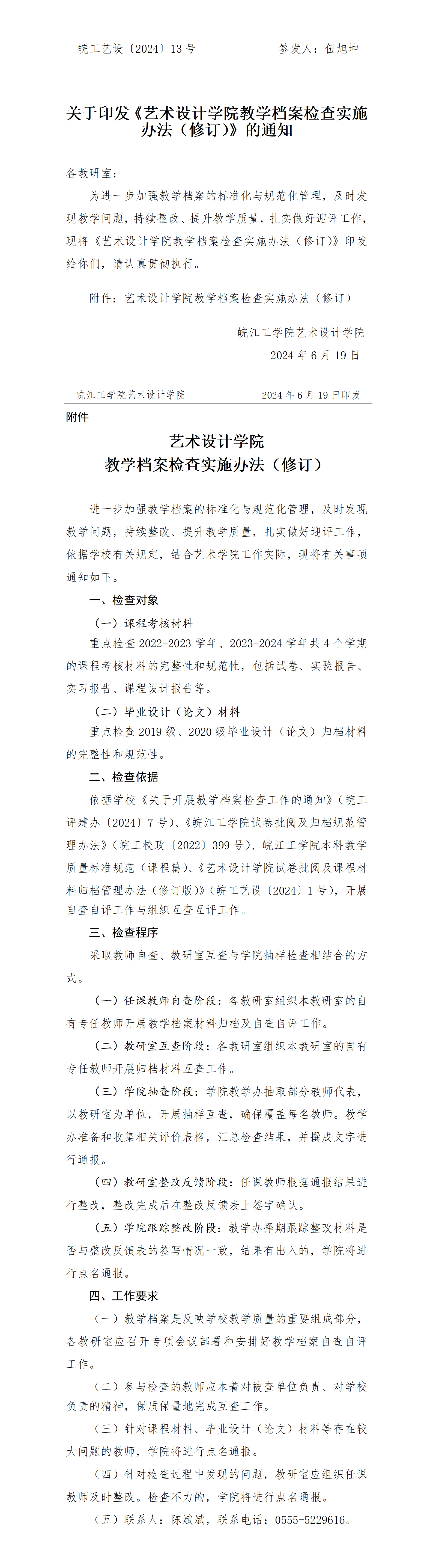 关于印发《艺术设计学院教学档案检查实施办法(修订)》的通知