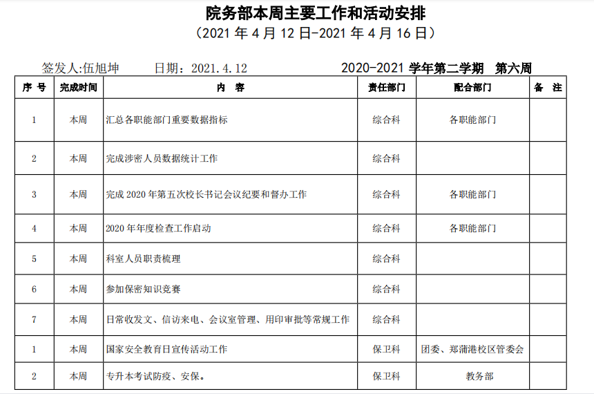 18新利怎样院务部第六周工作安排