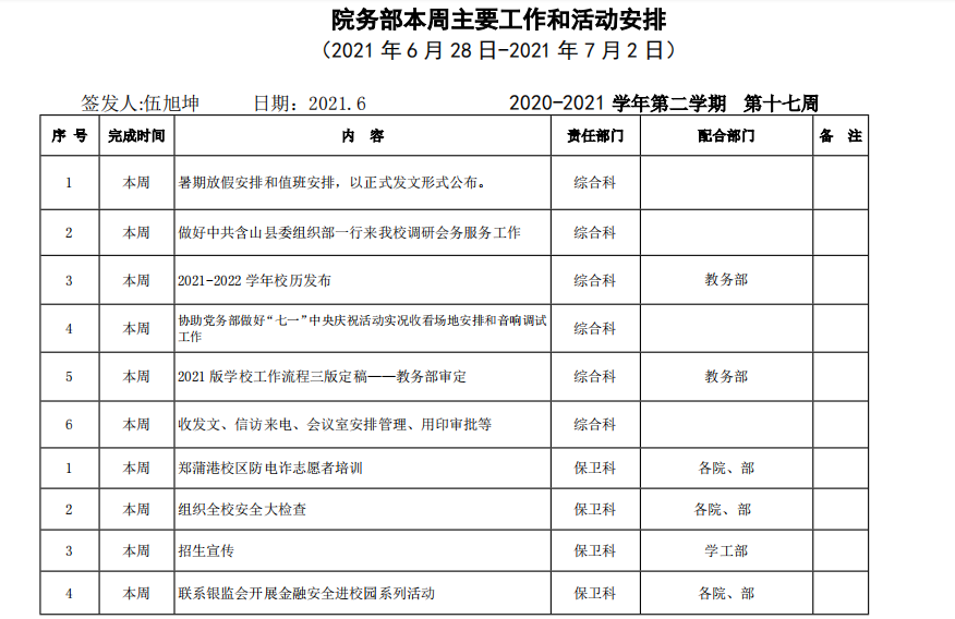 18新利怎样院务部第十七周工作安排