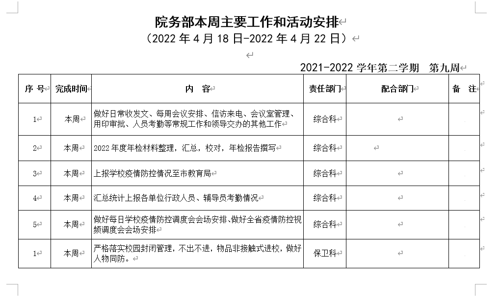 18新利怎样院务部第九周工作安排