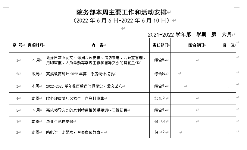 18新利怎样院务部第十六周工作安排