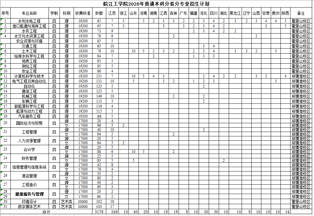 18新利怎样2020年普通本科分省分专业招生计划