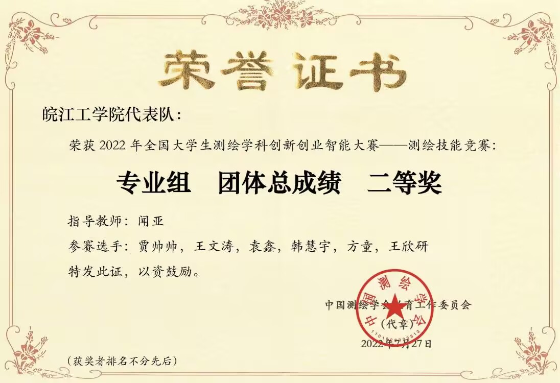 (3)学生创新创业、技能竞赛成果颇丰。学院高度重视学风建设,积极开展丰富多彩的学风建设活动,以“鲁班杯”结构设计大赛为学院品牌活动,将“课程思政”、“五育”并举与“三全育人”贯穿于教育教学全过程,发挥多方面协同育人效应,着力打造“12345”人才培养模式,以知识、能力、品格协调发展为人才培养目标,使学生乐学、勤学、会学,树立求真务实,笃学创新的良好学风,人才培养质量逐步提高。学生获全国数学建模比赛、全国周培源力学竞赛、大学英语竞赛等省部级以上奖项百余项。其中,测绘专业学生在2022年全国大学生测绘技能竞赛中获团体总成绩二等奖;虚拟仿真数字测图比赛二等奖;无人机航测虚拟仿真比赛一等奖;2019级土木工程专业学生王振铎获评2022年全国“三下乡”社会实践“优秀个人”荣誉称号。
