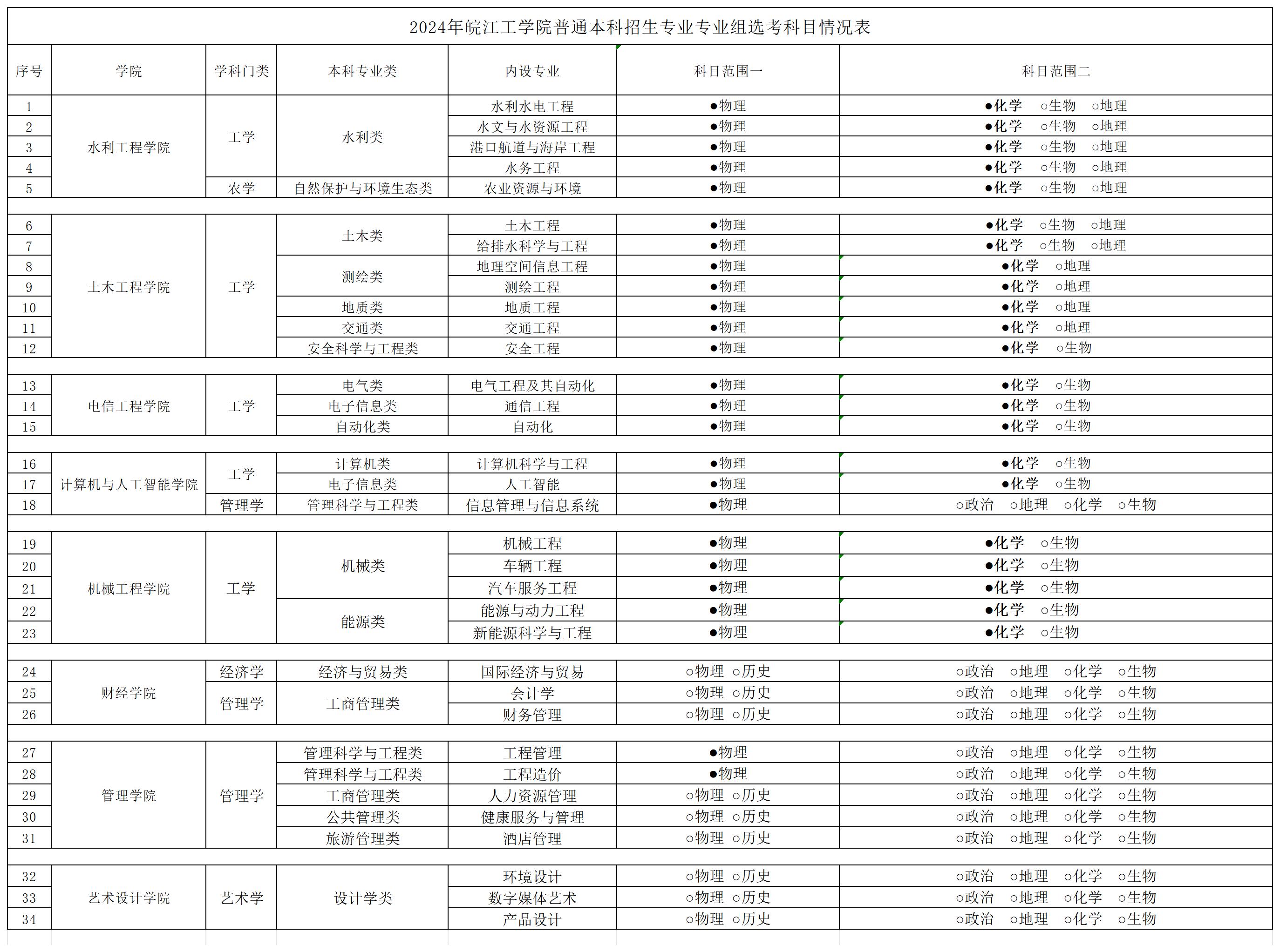 2024年18新利怎样普通本科招生专业专业组选考科目情况表