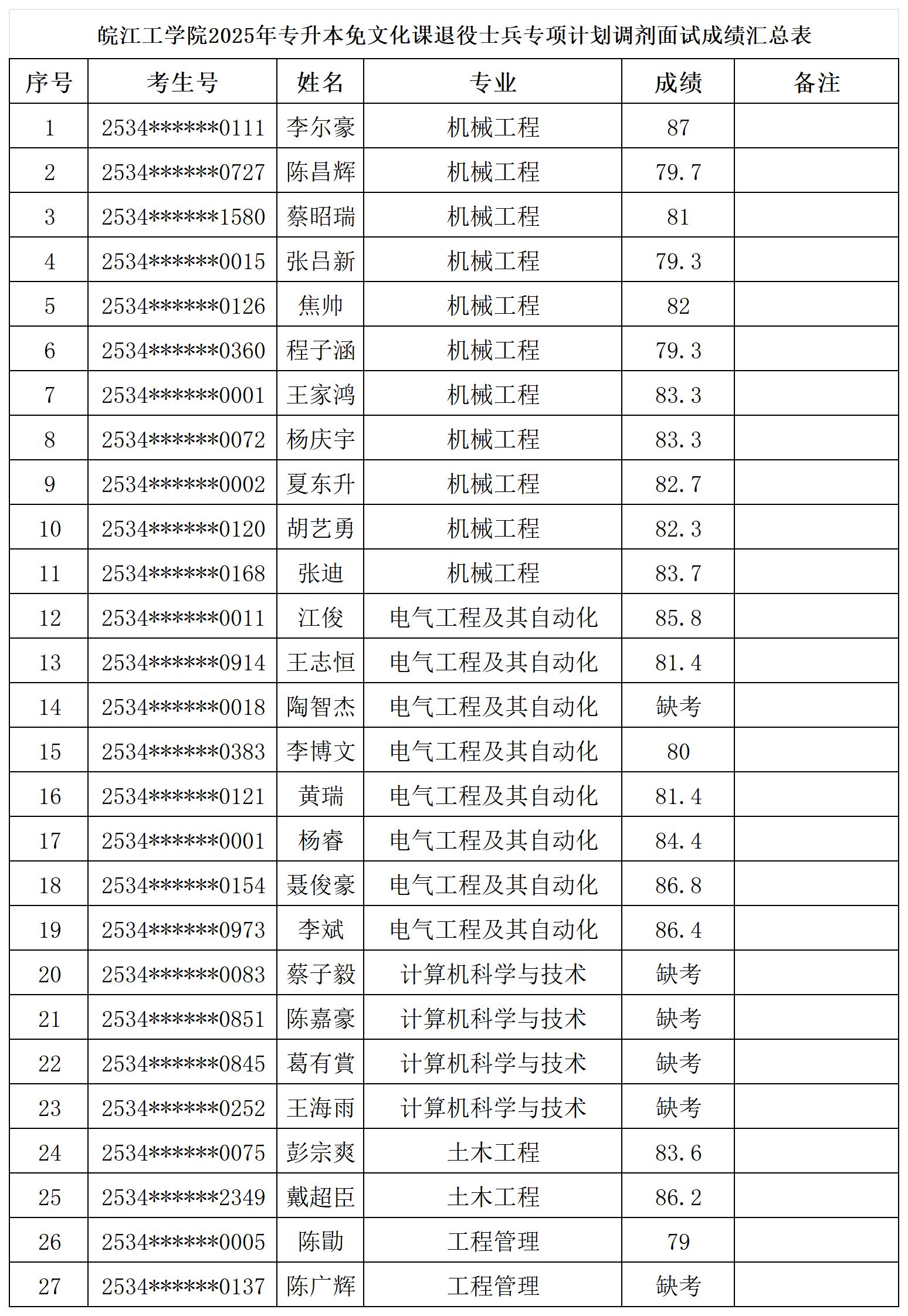 18新利怎样2025年普通高校专升本免文化课退役士兵专项计划调剂面试成绩公示