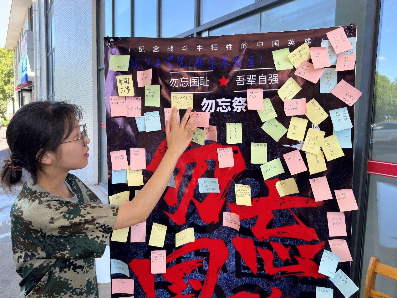 上午,学校食堂南门的场地已精心布置完毕,众多师生陆续抵达现场,在组织者的引导下,按照既定程序井然有序地参与活动。参与者们纷纷以签字笔在标签上郑重书写对先烈的缅怀之情及对未来愿景的期许。随后,承载着情感的文字在缅怀先烈的主题展板上得到展示。活动期间,展板侧的音响系统循环播放“九一八”事变的记录音频,通过听觉的震撼加深了师生对这段历史的认知。活动尾声,全体师生齐聚横幅前,依次签署姓名,并集体合影留念。本次活动的开展为全校师生提供了一次深刻的历史教育及精神上的洗礼。大家一致表示,要以史为鉴,珍爱和平,努力学习和工作,为祖国的繁荣昌盛和民族的伟大复兴贡献自己的力量。